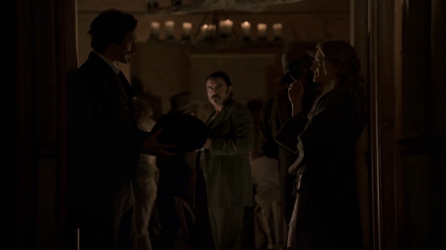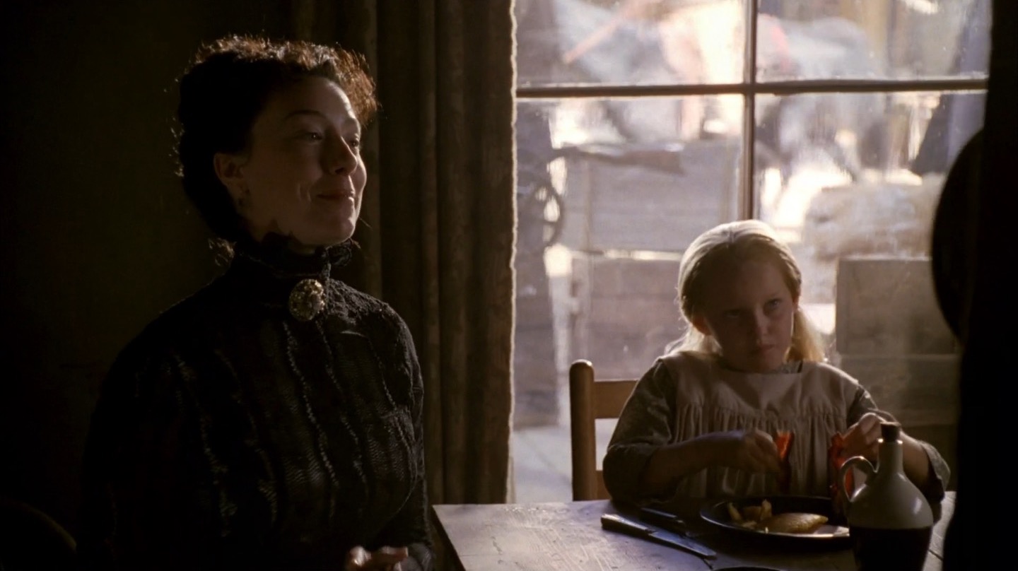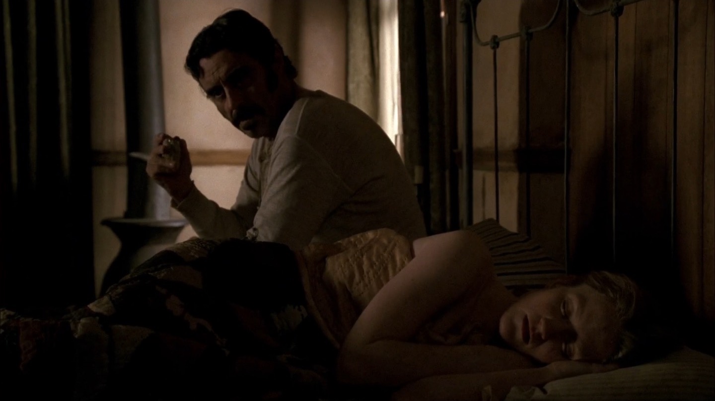 “No Other Sons or Daughters” puts the brunt of its focus on the new ad hoc government of Deadwood. As the United States begins to move further westward, Al (Ian McShane) and the other leaders in the town worry about what sort of outside forces and order that might bring to the town. In the meantime, Reverend Smith’s (Ray McKinnon) health continues to decline, Jane (Robin Weigert) contemplates leaving the camp, Joanie (Kim Dickens) strikes out on her own and Alma (Molly Parker) and Seth (Timothy Olyphant) dance around a significant barrier to their blossoming affection.