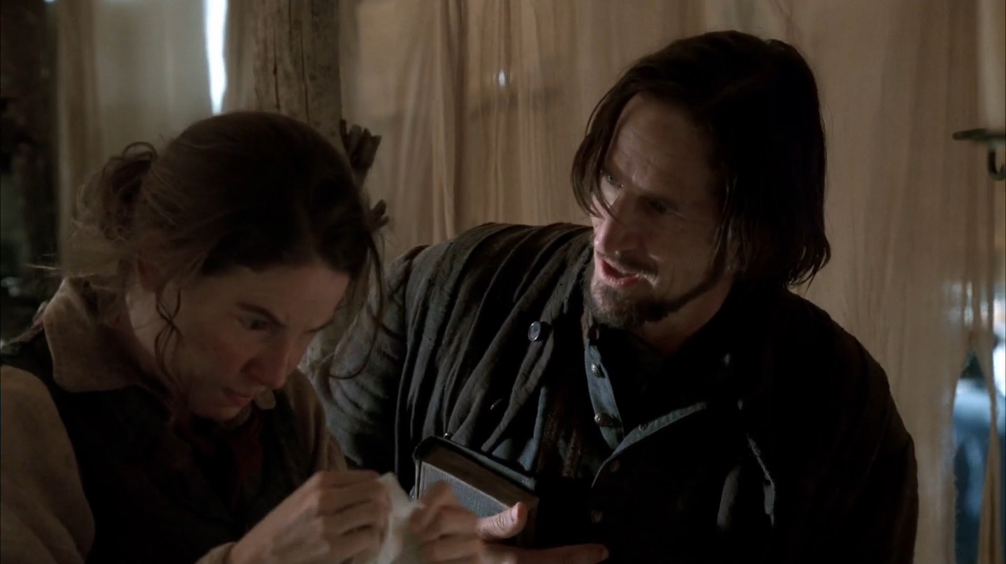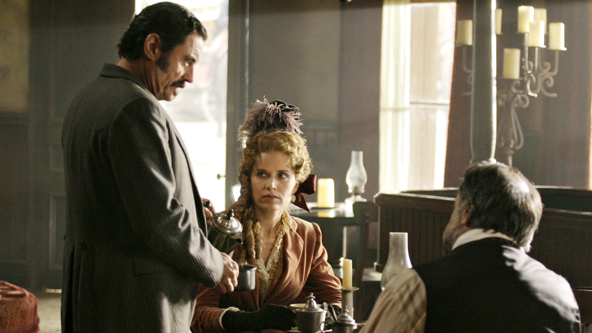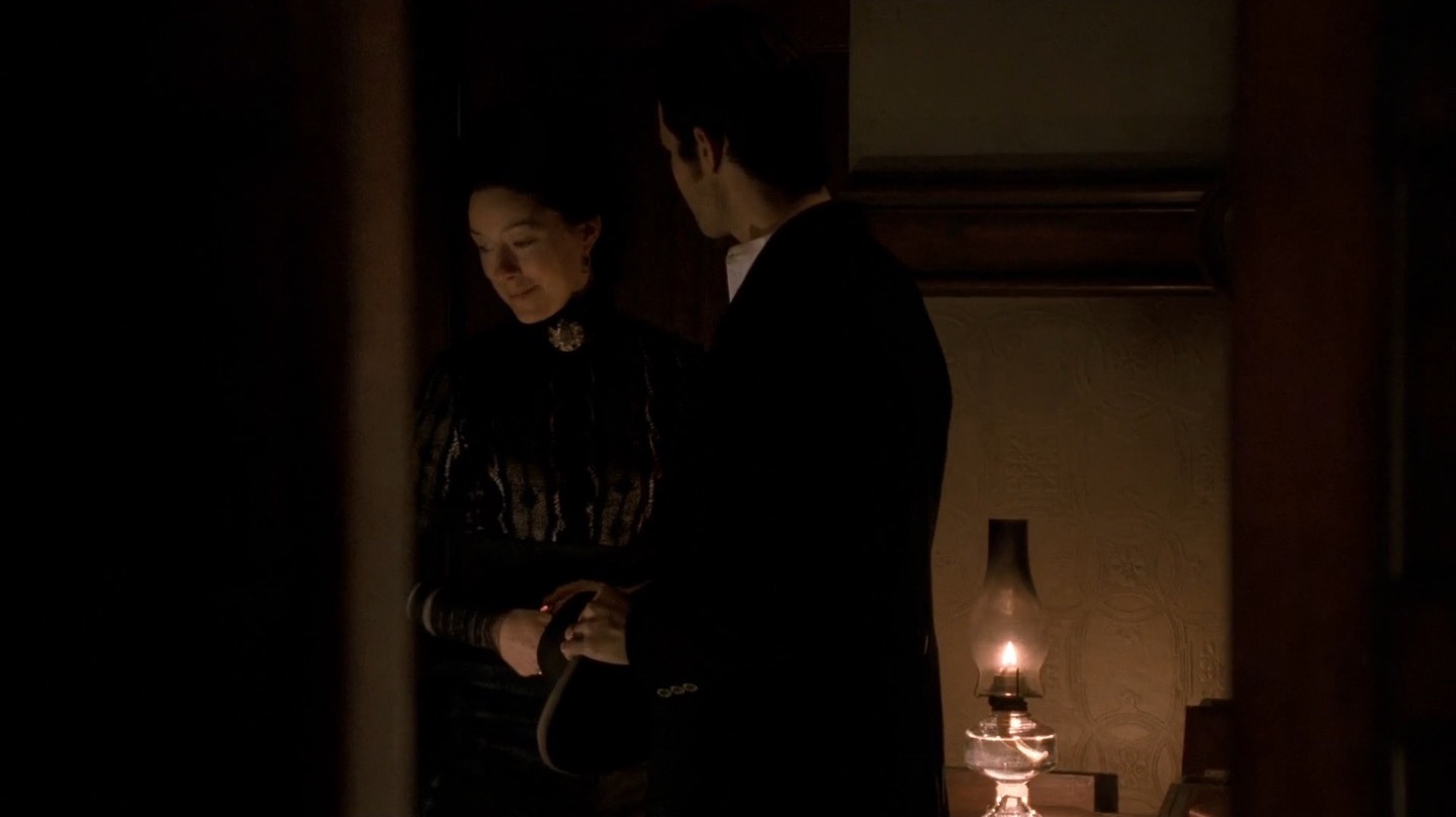 “No Other Sons or Daughters” puts the brunt of its focus on the new ad hoc government of Deadwood. As the United States begins to move further westward, Al (Ian McShane) and the other leaders in the town worry about what sort of outside forces and order that might bring to the town. In the meantime, Reverend Smith’s (Ray McKinnon) health continues to decline, Jane (Robin Weigert) contemplates leaving the camp, Joanie (Kim Dickens) strikes out on her own and Alma (Molly Parker) and Seth (Timothy Olyphant) dance around a significant barrier to their blossoming affection.