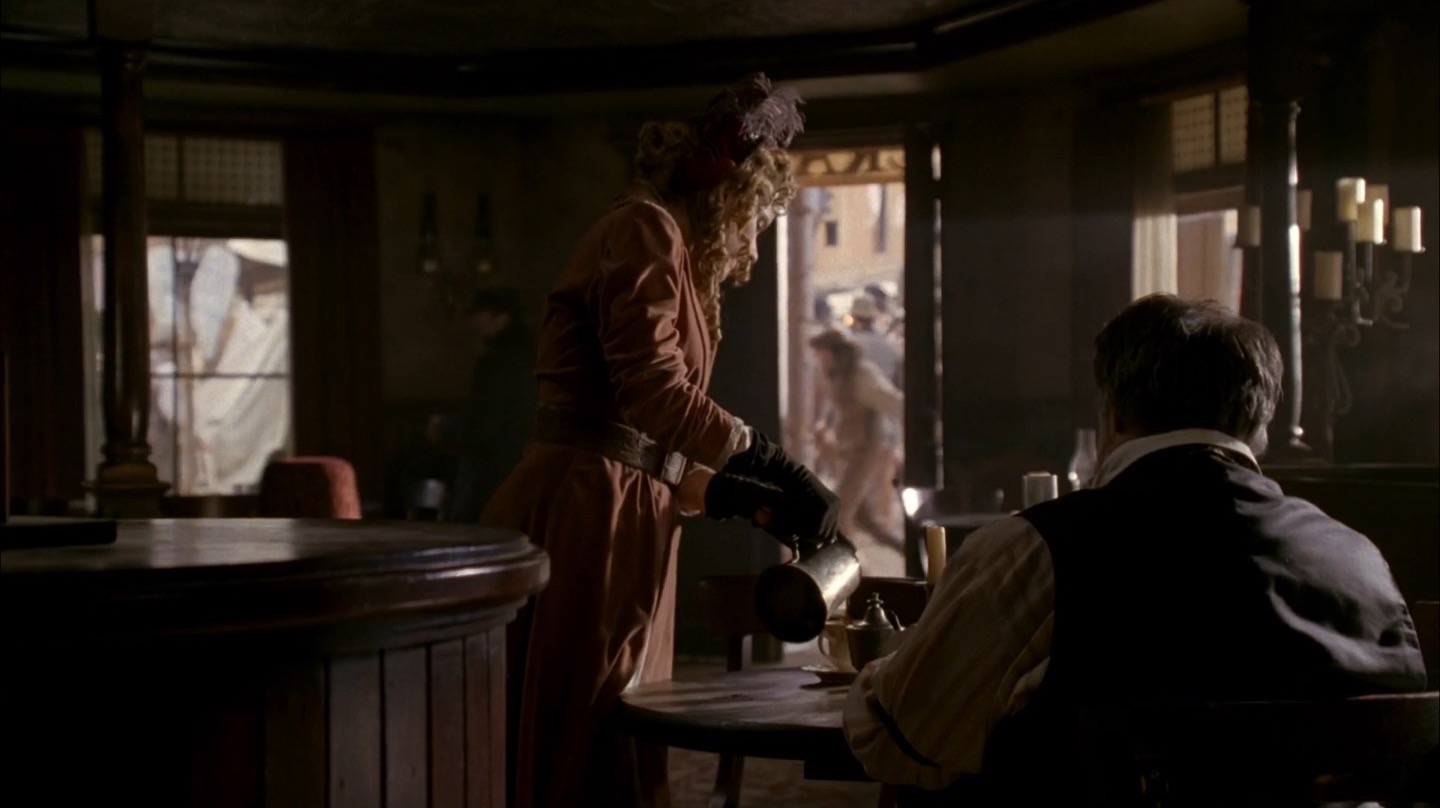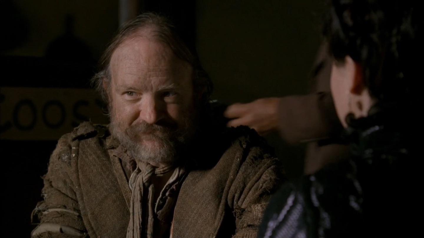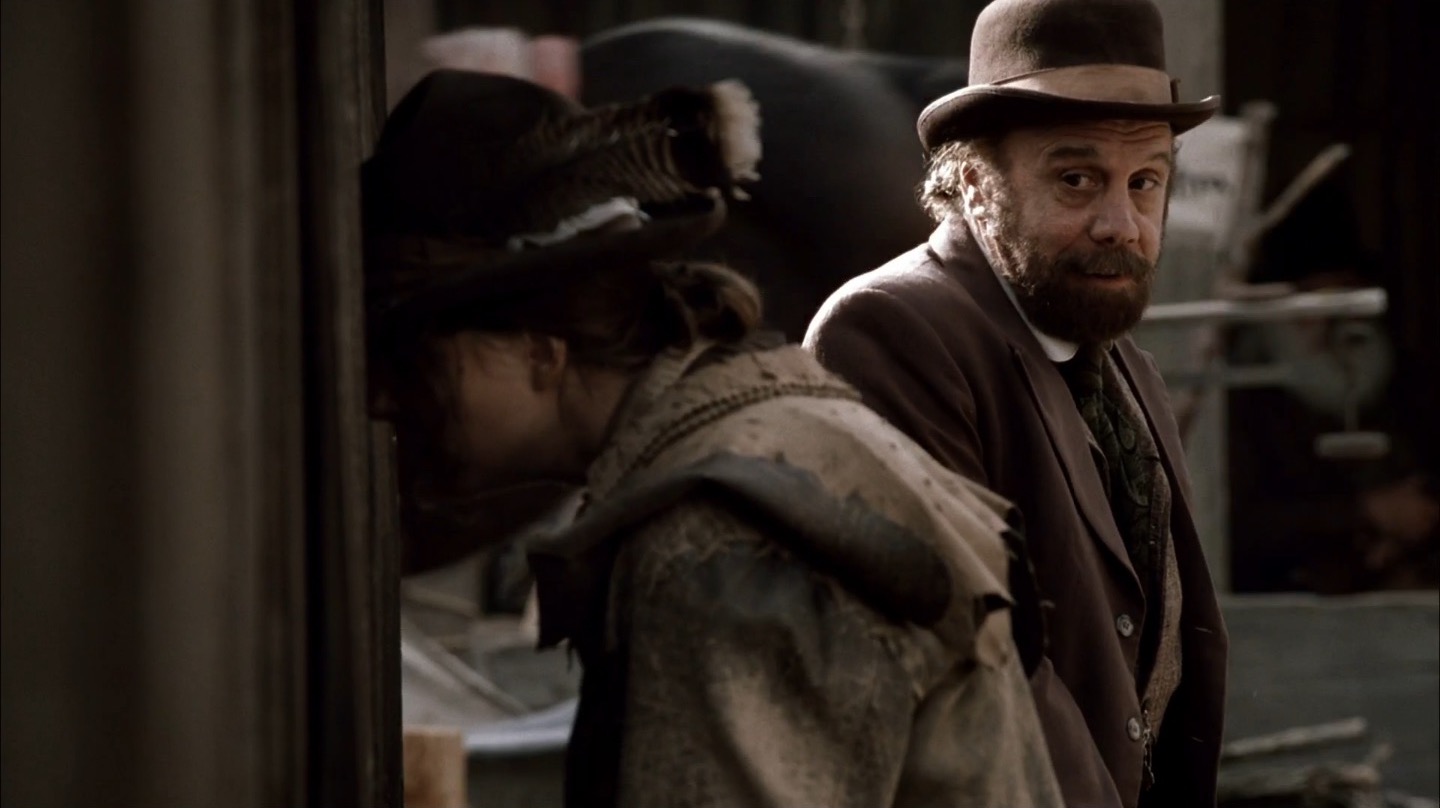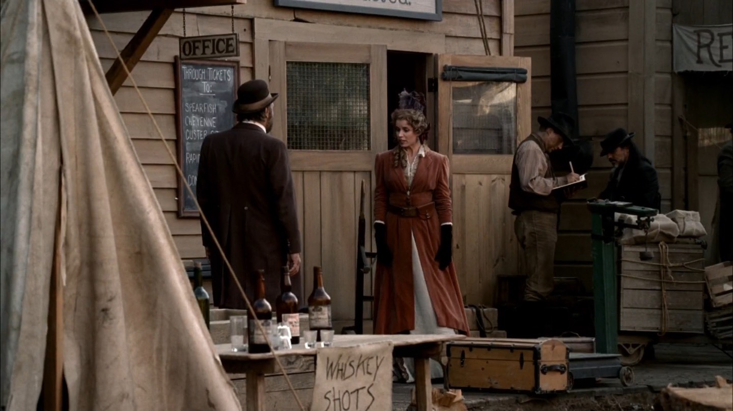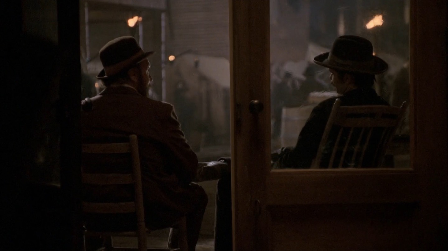 J and I pay particular attention to Deadwood‘s commentary on government in this episode. It remains to be seen if the show will take a firm stance on whether government and laws are benevolent components of society, but we already note the direct link between bribery/protection money and taxes. The generally farcical nature of this and past episodes on the topic of leadership would lead me to believe Milch and Co. are fairly cynical about the government, but we’ll see how things shape up in coming seasons.