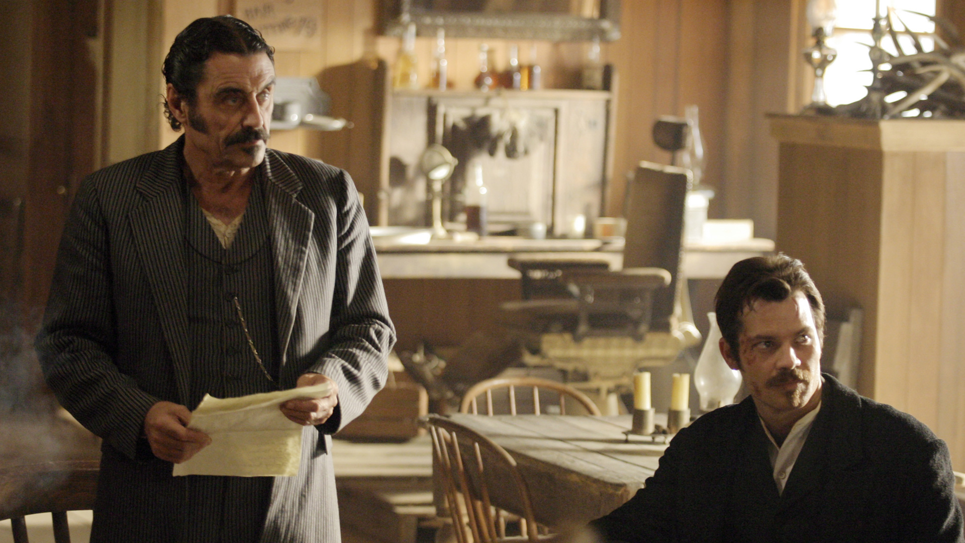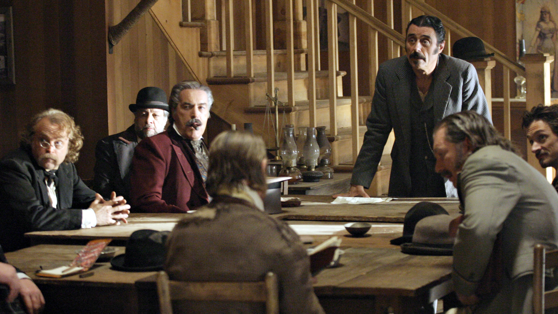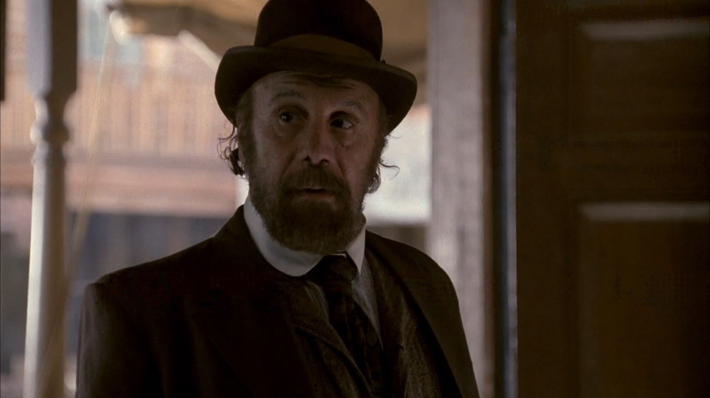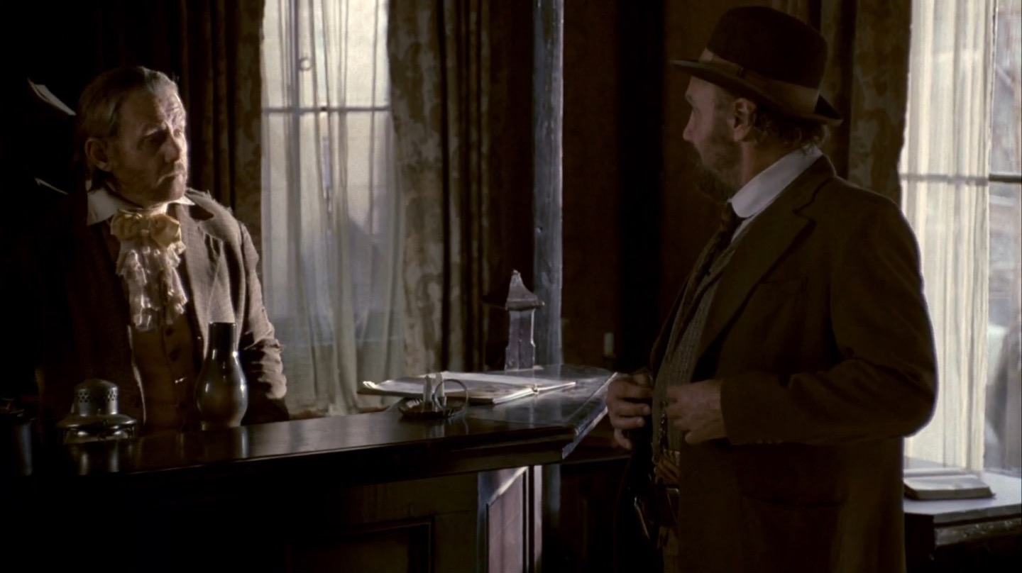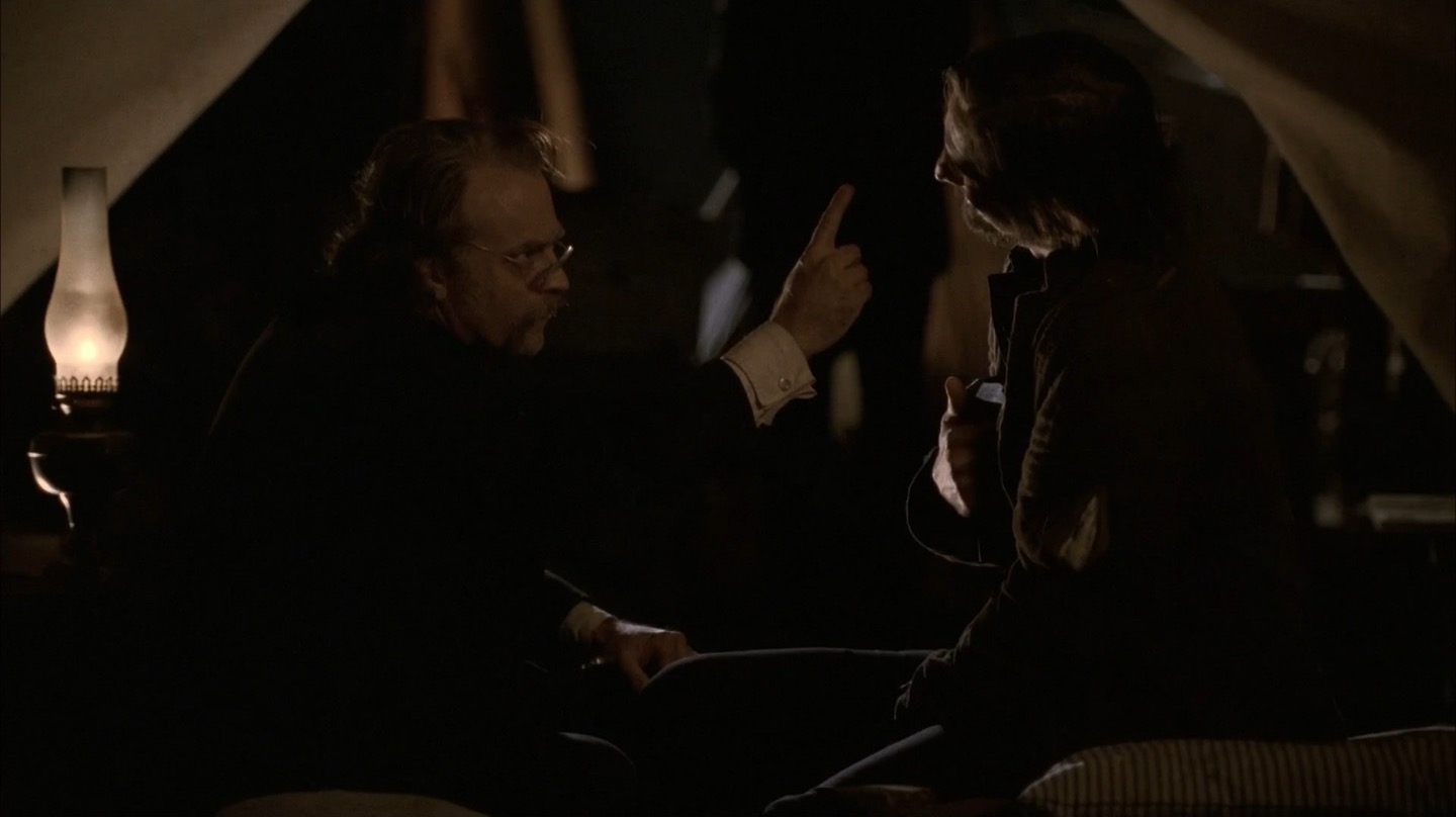 J and I pay particular attention to Deadwood‘s commentary on government in this episode. It remains to be seen if the show will take a firm stance on whether government and laws are benevolent components of society, but we already note the direct link between bribery/protection money and taxes. The generally farcical nature of this and past episodes on the topic of leadership would lead me to believe Milch and Co. are fairly cynical about the government, but we’ll see how things shape up in coming seasons.
