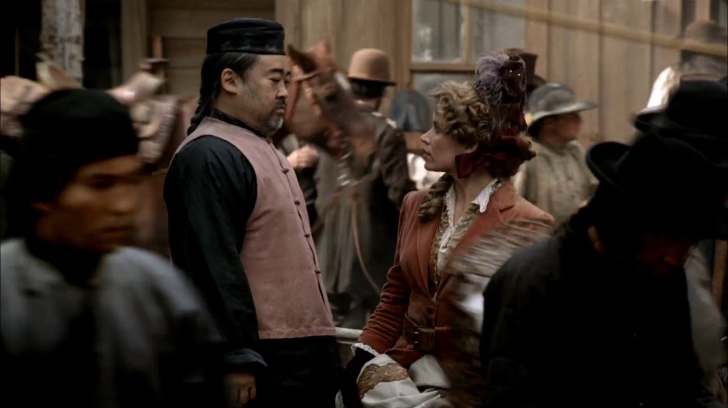 Finally, what begins as a healthy discussion about the technical acumen of this particular episode quickly devolves into porcine admiration. We first discuss Xavier Grobet’s fantastic almost Spielbergian camerawork as he follows characters as they enter and exit scenes. Yet as we explore one of these moments (wherein Joanie traverses the camp to find a suitable location for her new business), J couldn’t help but point out how remarkably photogenic Mr. Wu’s (Keone Young) pigs are.