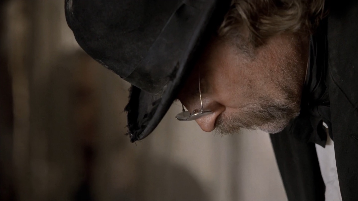 J and I pay particular attention to Deadwood‘s commentary on government in this episode. It remains to be seen if the show will take a firm stance on whether government and laws are benevolent components of society, but we already note the direct link between bribery/protection money and taxes. The generally farcical nature of this and past episodes on the topic of leadership would lead me to believe Milch and Co. are fairly cynical about the government, but we’ll see how things shape up in coming seasons.
