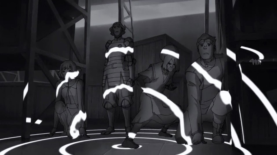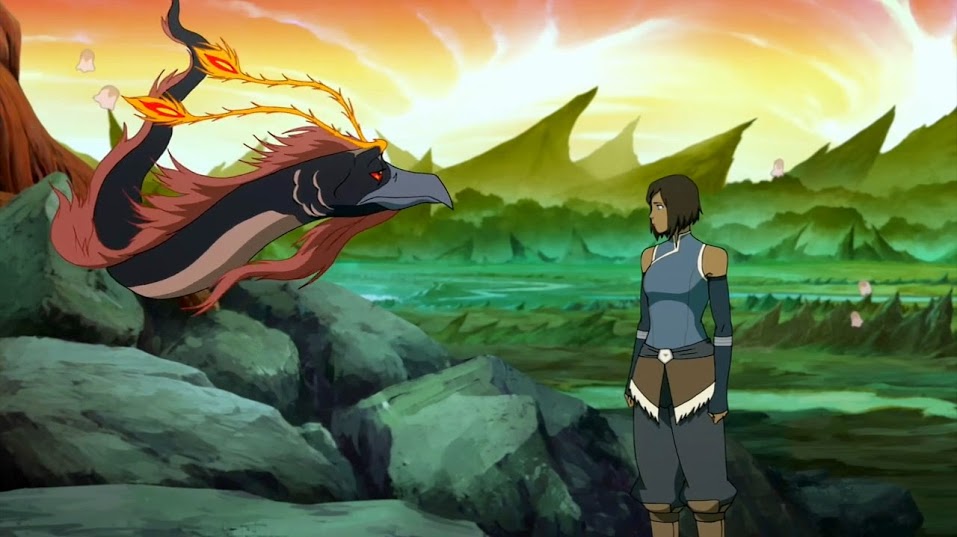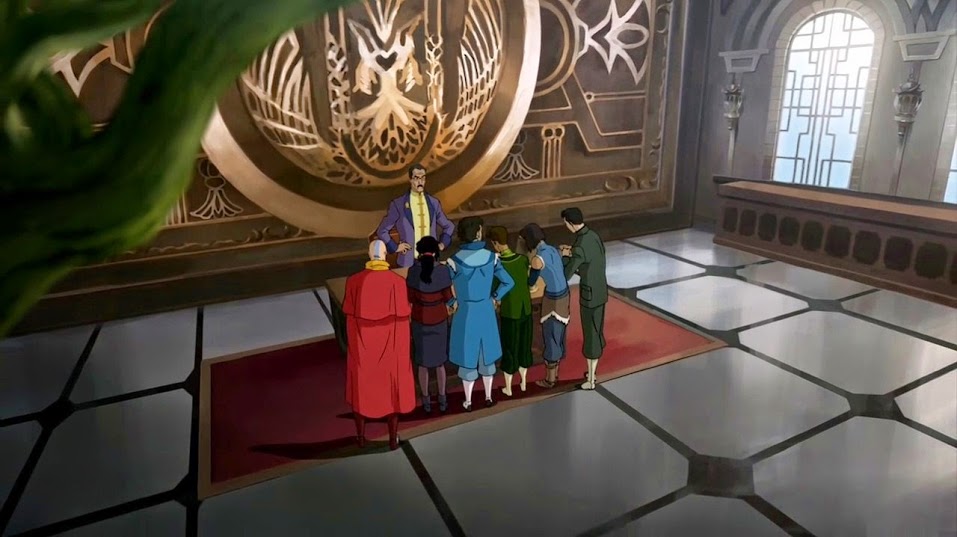 Meanwhile, Korra works with President Raiko to come up with alternative methods for dealing with Kuvira rather than turn to spirit vine technology. She turns to the spirits for help but is met with a cold shoulder. These few scenes appear to be key to setting up the finale.