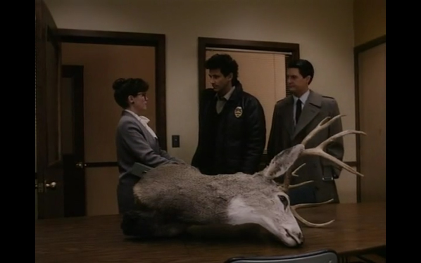I find it fun to watch shows from the 90s. Despite the groundbreaking work done in Twin Peaks, there are some undoubtedly antiquated trappings scattered throughout the show. Still, there’s certainly an air of gripping tension and Lynchian surrealism that keeps the show feeling fresh even with a modern perspective. And, as J and I both point out, there’s a dark humor that raises its head throughout the episode. I enjoy this aspect; it gives the show an absurd bite that helps break some of the more dour components of the show.