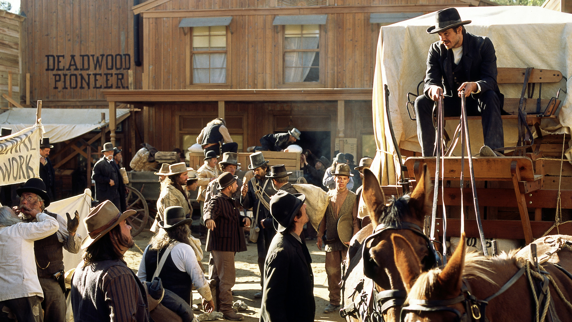 After wrapping up “Stark Contrast” (our Game of Thrones podcast) for the year, J and I have decided to take a detour out West. We’re delving into Deadwood, David Milch’s off-kilter Western series set in the historical frontier town of the same name. I’m a big fan of the show; I own the full box set on Blu-ray and consider it one of my all-time favorites. Meanwhile, J hasn’t ever seen what Al Swearengen (Ian McShane) and company have to offer — until now.