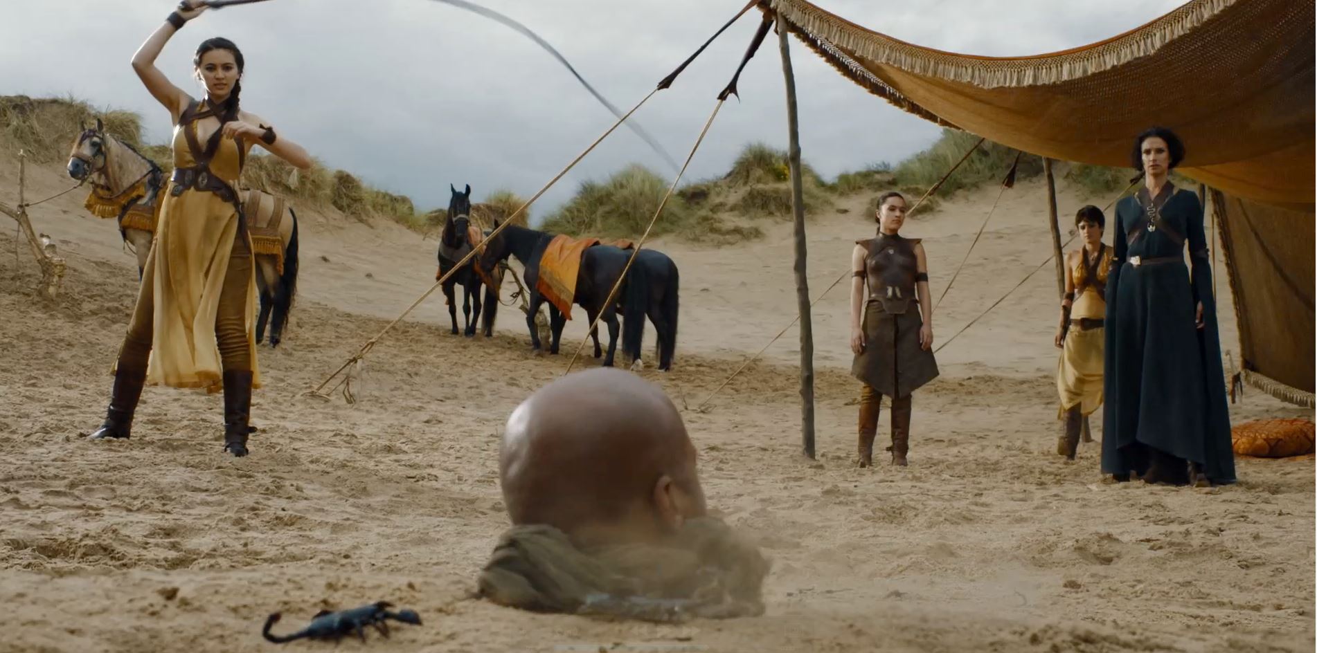 Finally, we move on to Essos where Danaerys continues to struggle as queen of Meereen. And, as a result of her disregard for the traditions of the city, both her Kingsguard and the leader of the Unsullied are—perhaps mortally. We speculate whether Tyrion’s (Peter Dinklage) arrival might help right this sinking ship.