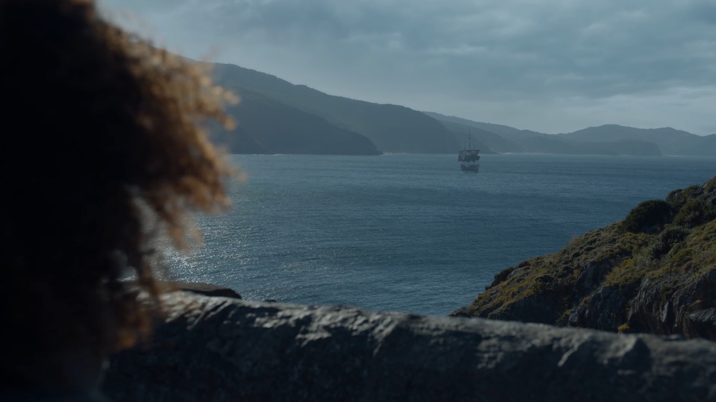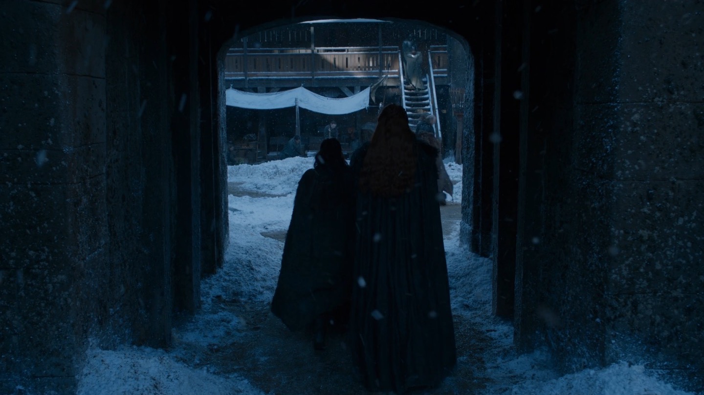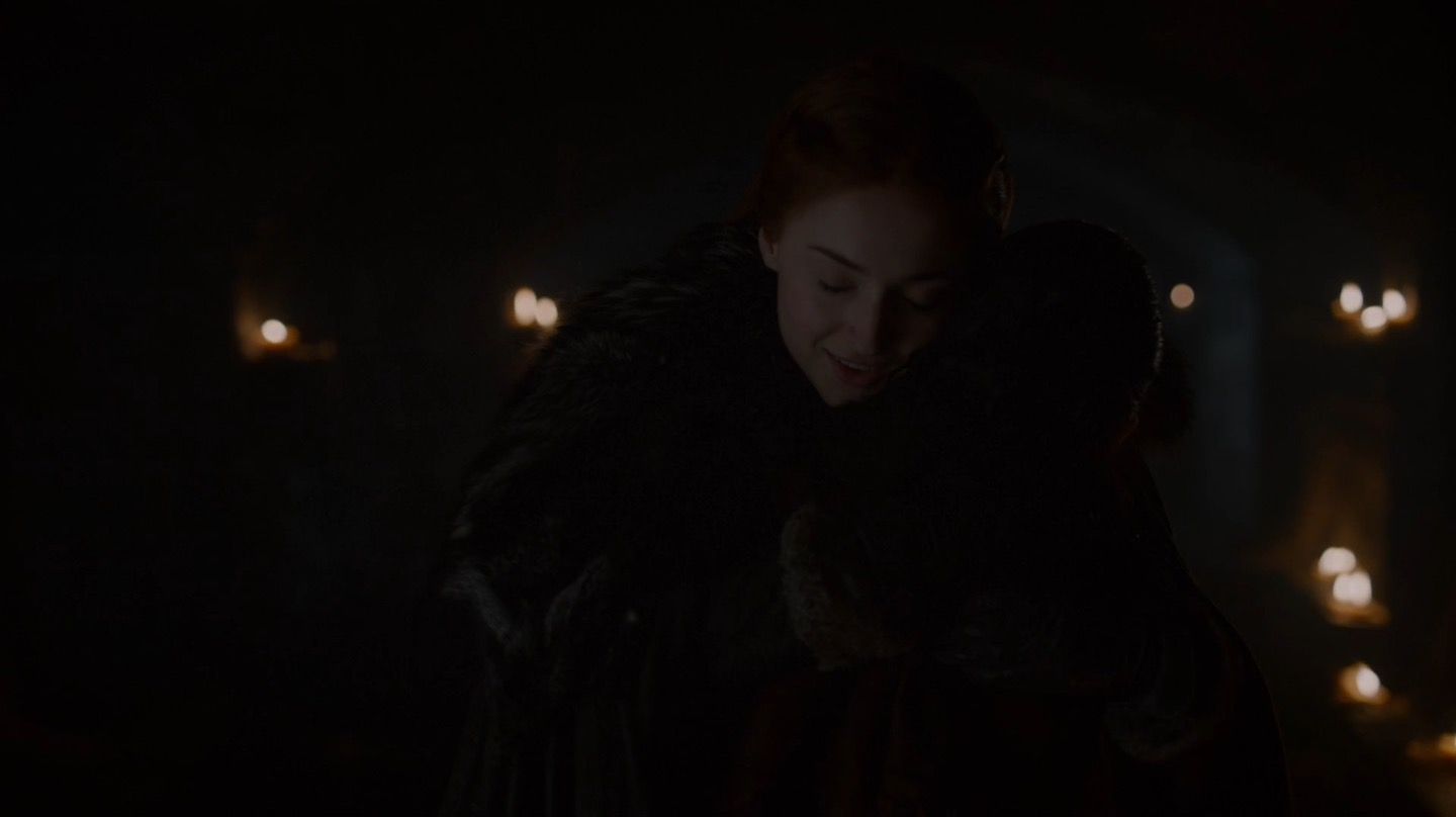 Arya (Maisie Williams) returns to Winterfell for the first time, countering my suspicion that she was headed to King’s Landing. I enjoyed the contrast of seeing her back home now with the scenes which opened Season 1 years ago. I also found her reunion with Sansa (Sophie Turner) to be an engaging moment reflective of their extraordinary individual journeys. Josh, of course, found their meeting underwhelming.