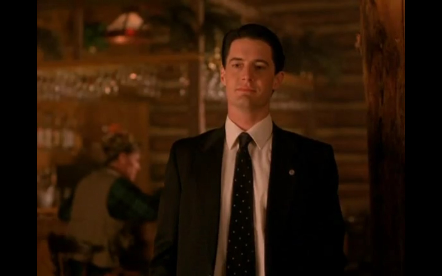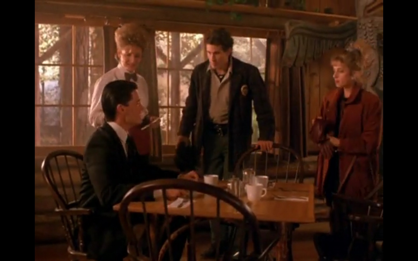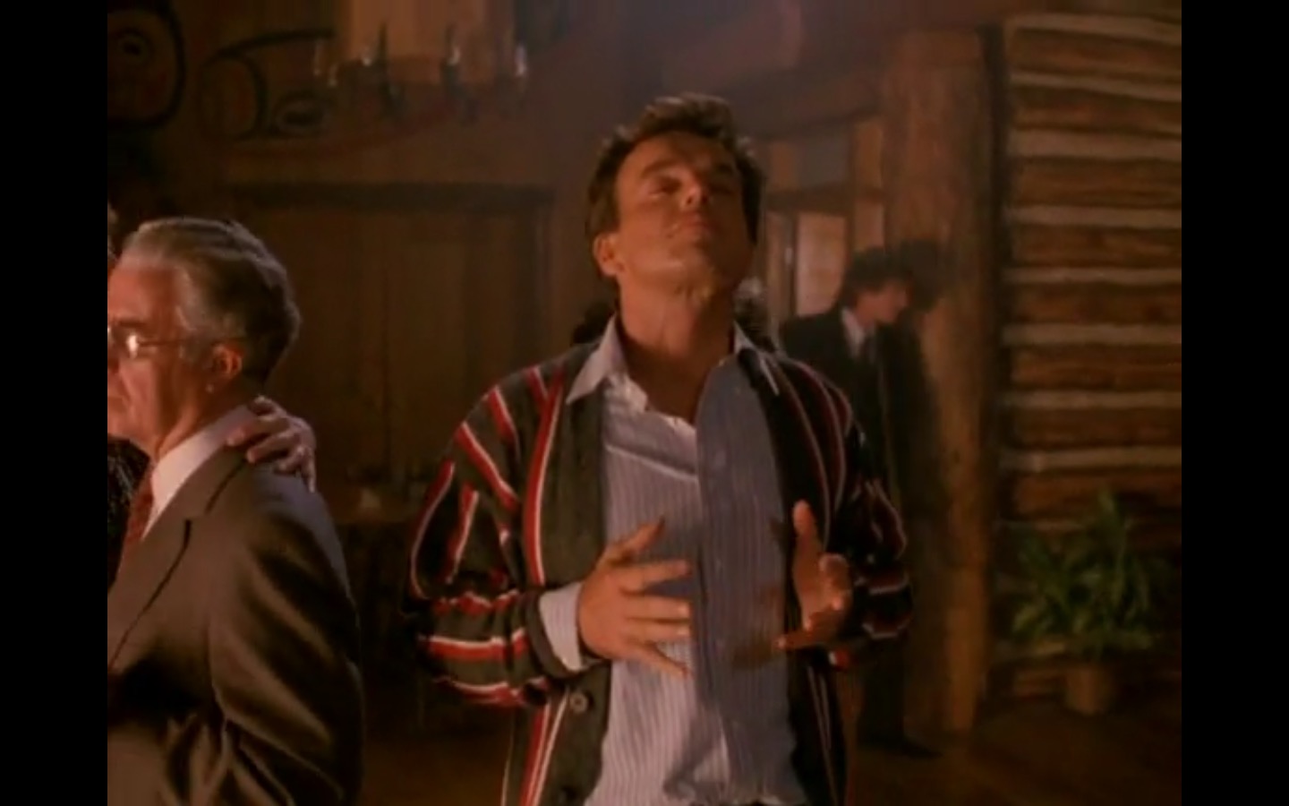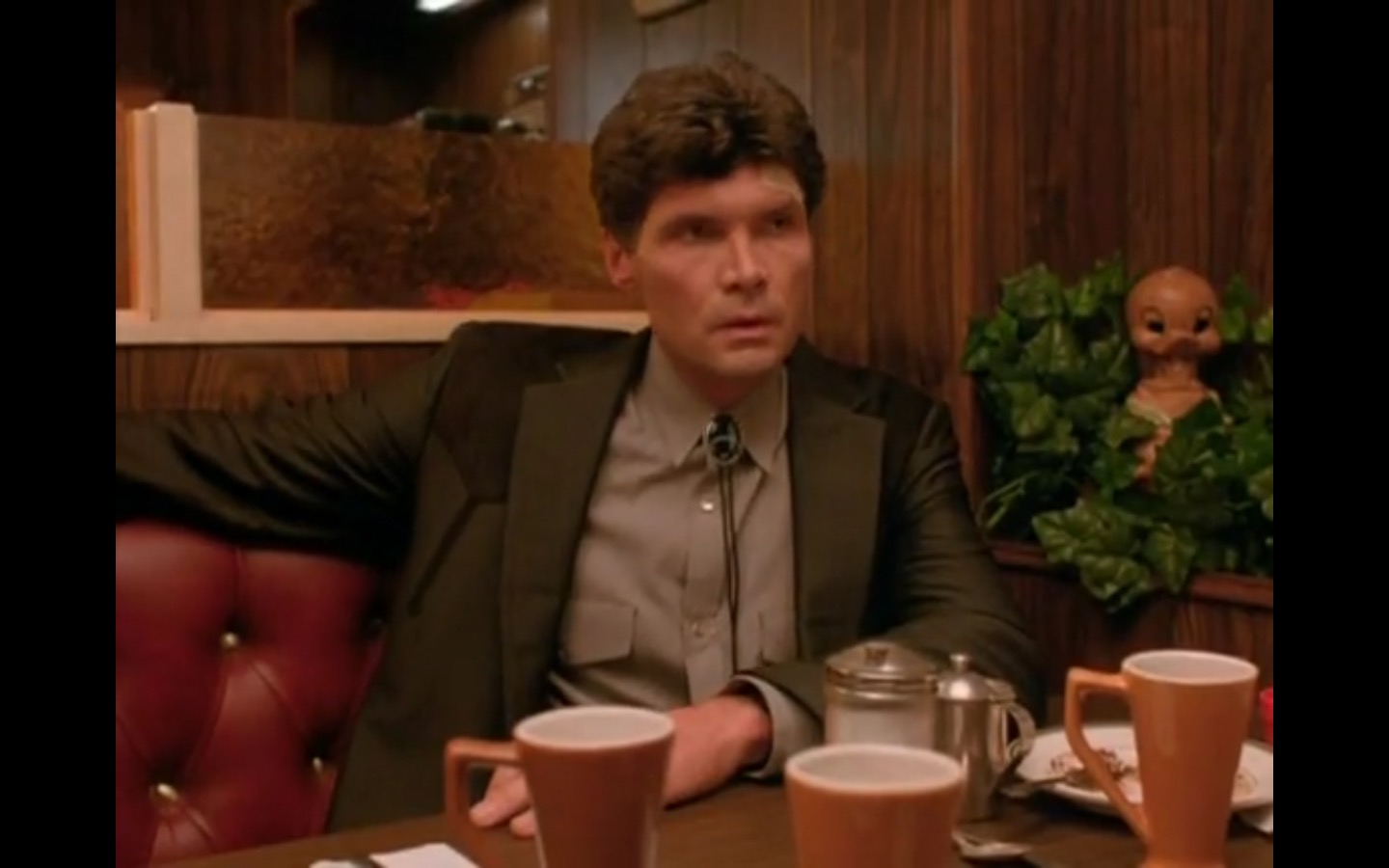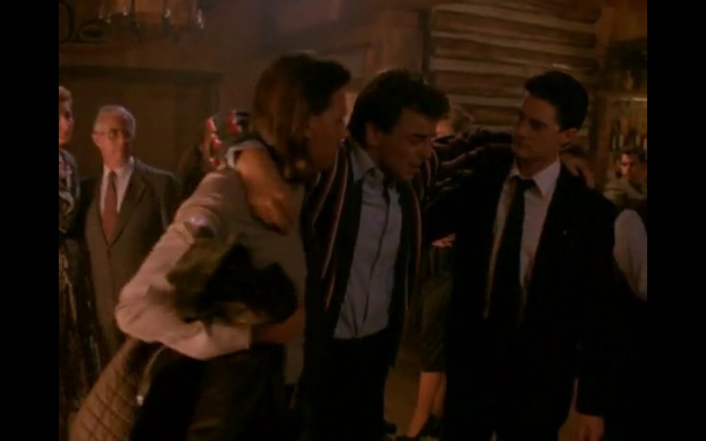 J and I also observed that the townspeople’s opinion of Leland Palmer (Ray Wise) may not be as positive as we’d thought. Throughout his grieving, often to the embarrassment of his wife, Sarah (Grace Zabriskie), no one save the sheriff (Michael Ontkean) and Cooper bother to help him through his pain.