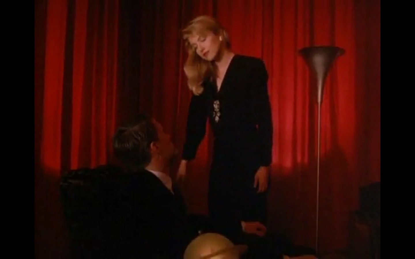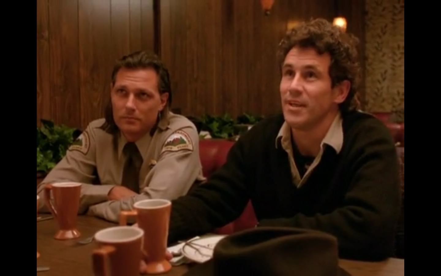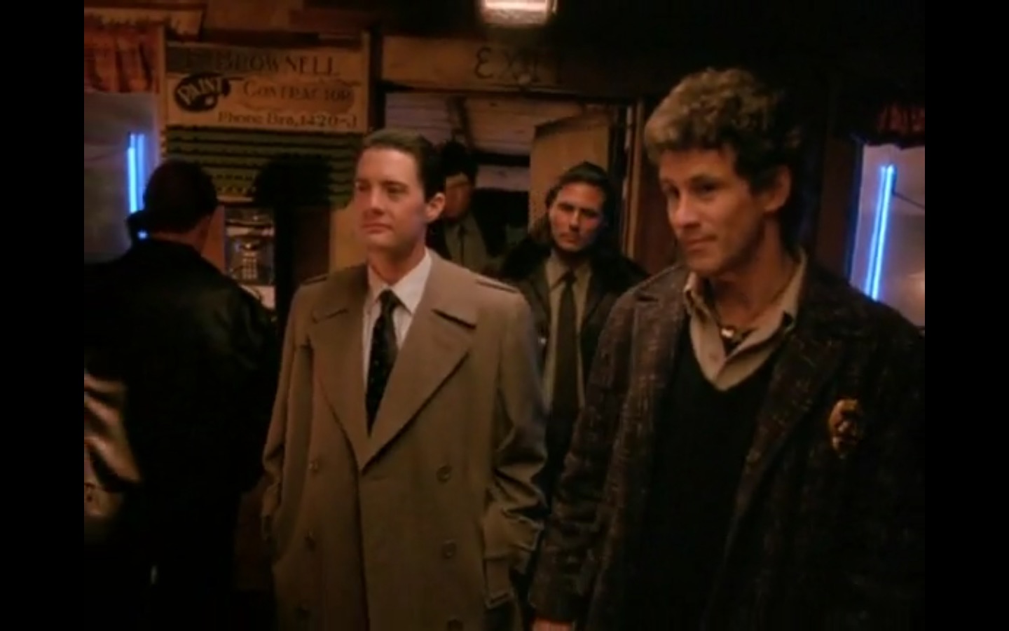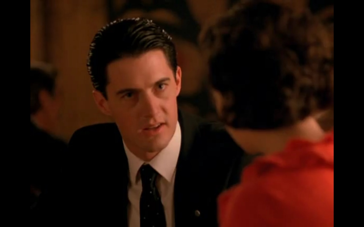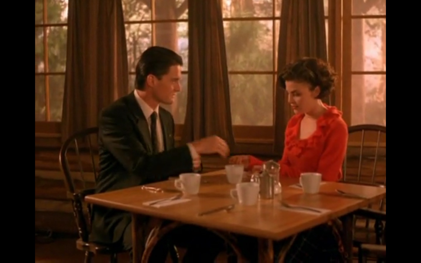 J and I also observed that the townspeople’s opinion of Leland Palmer (Ray Wise) may not be as positive as we’d thought. Throughout his grieving, often to the embarrassment of his wife, Sarah (Grace Zabriskie), no one save the sheriff (Michael Ontkean) and Cooper bother to help him through his pain.