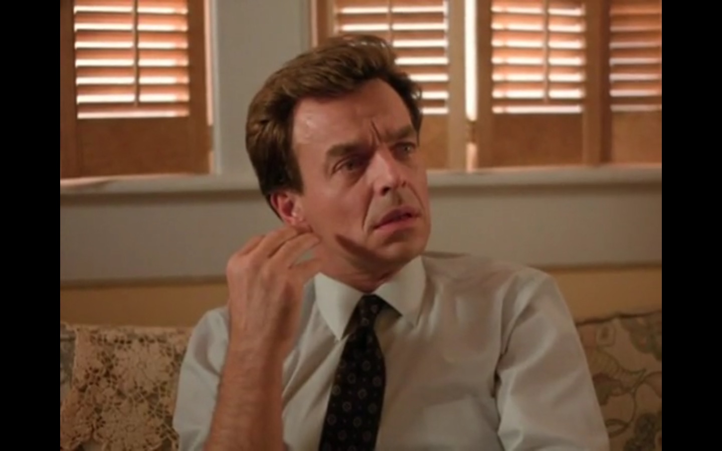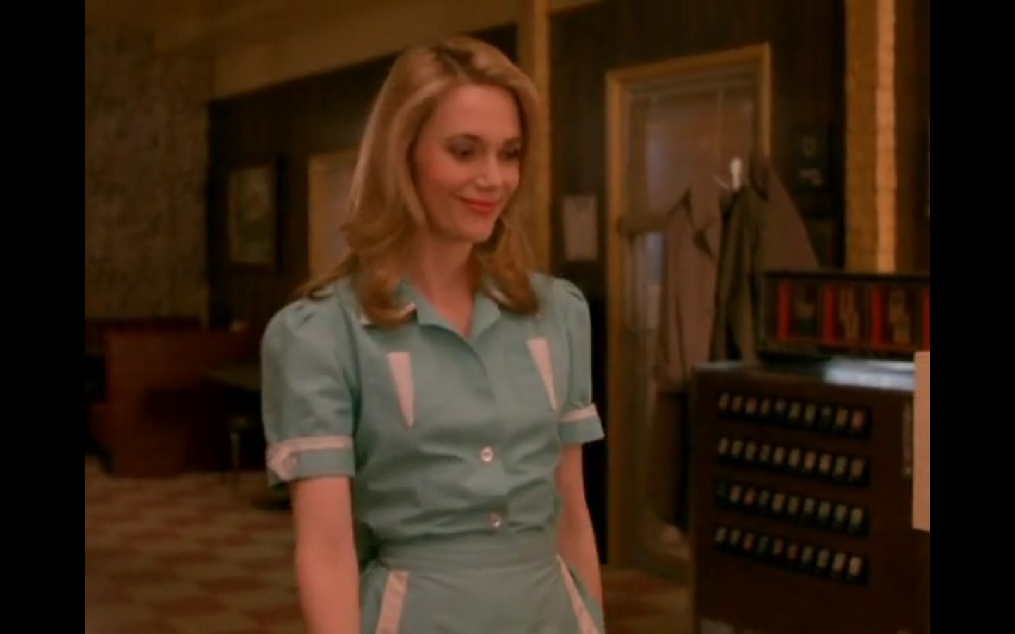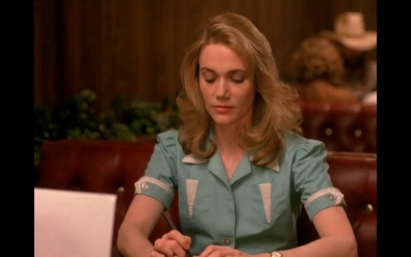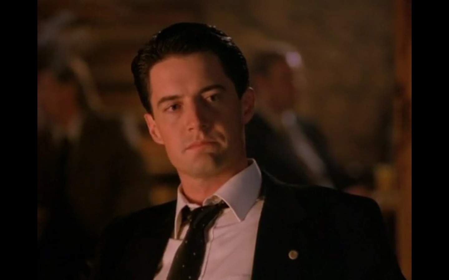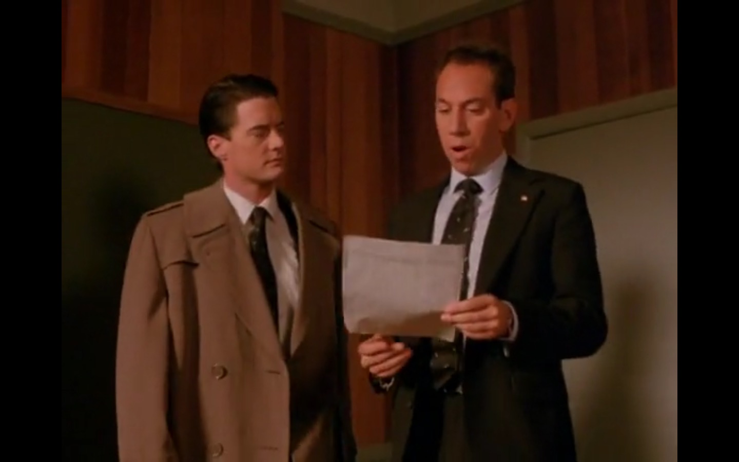 J and I also observed that the townspeople’s opinion of Leland Palmer (Ray Wise) may not be as positive as we’d thought. Throughout his grieving, often to the embarrassment of his wife, Sarah (Grace Zabriskie), no one save the sheriff (Michael Ontkean) and Cooper bother to help him through his pain.