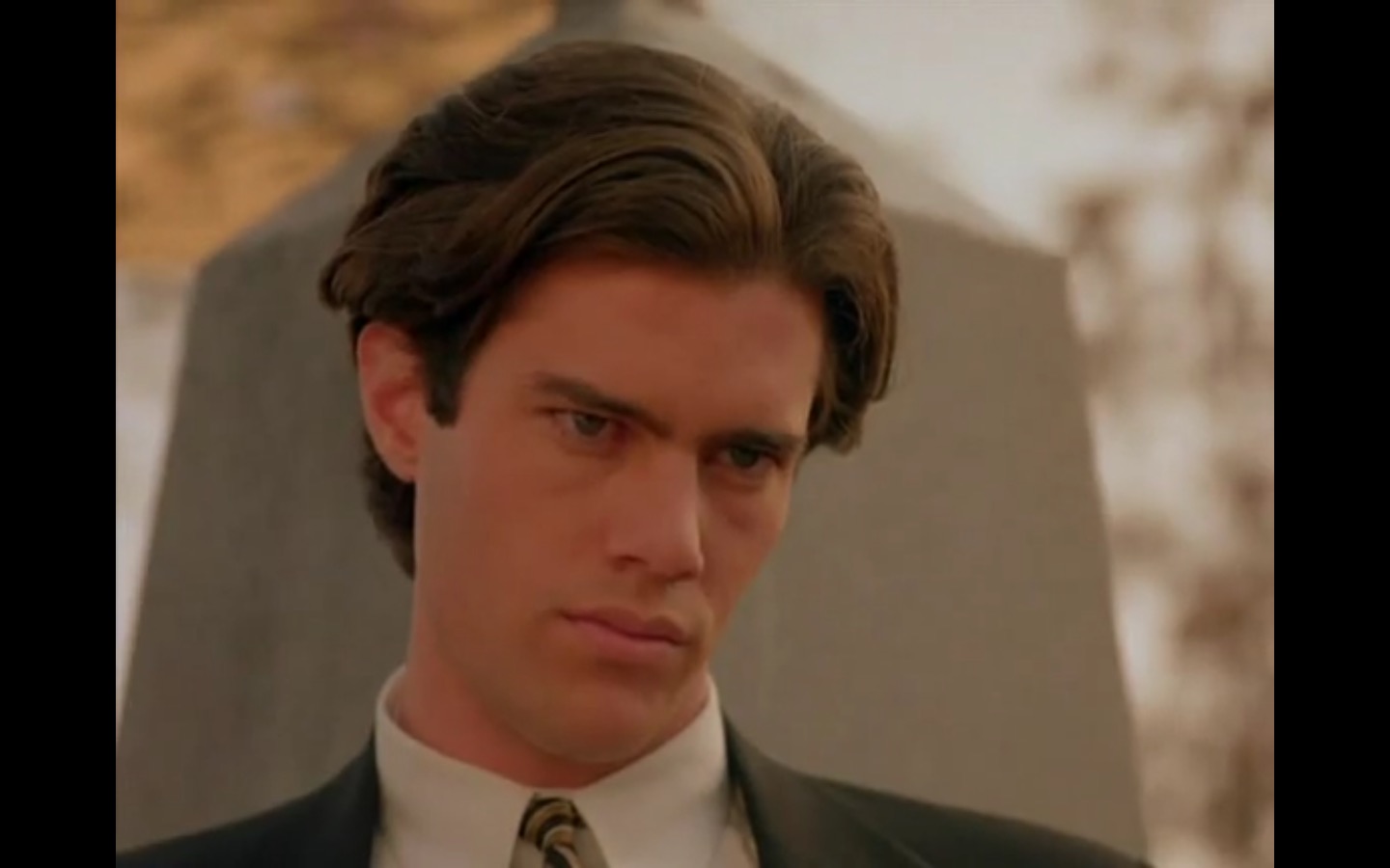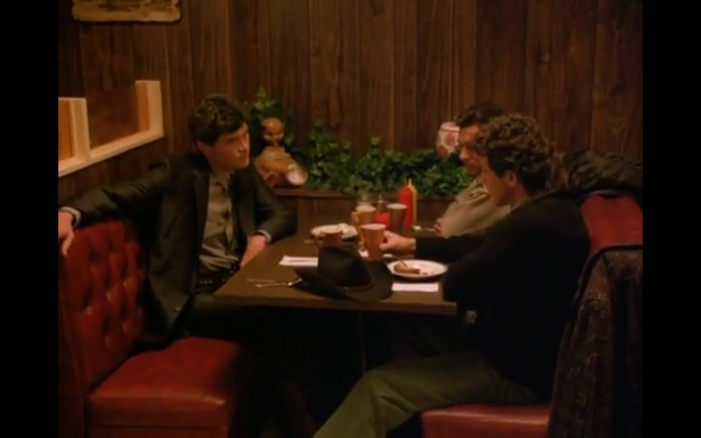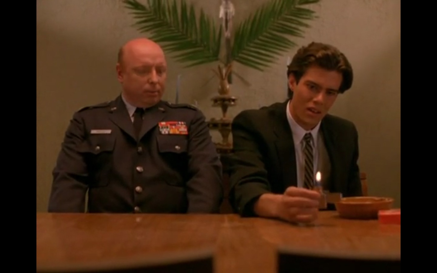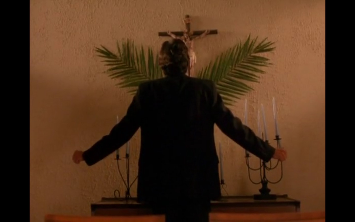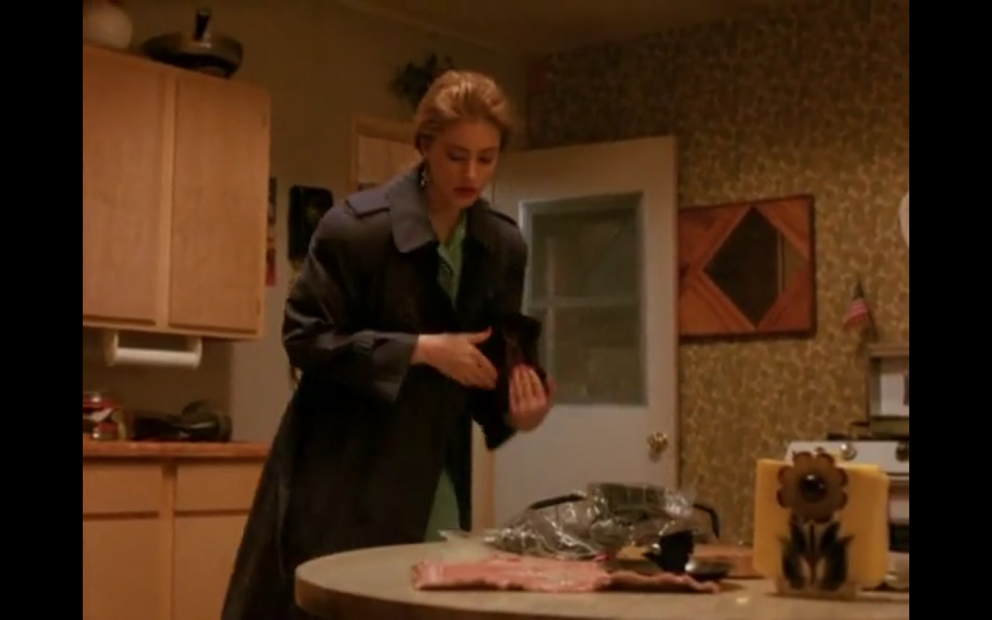 The centerpiece of the episode is undoubtedly the funeral. In preparing for Laura’s (Sheryl Lee) burial, Bobby (Dana Ashbrook) wrestles with his father and James (James Marshall) contemplates attending at all. Once there, the two quickly find themselves at odds, angrily lunging across the space in slow motion.