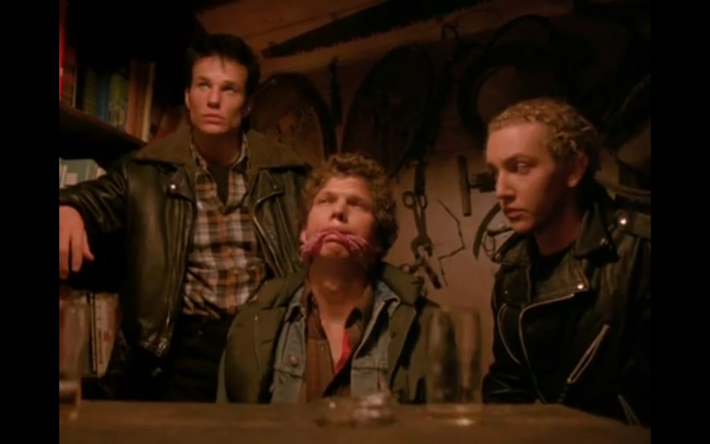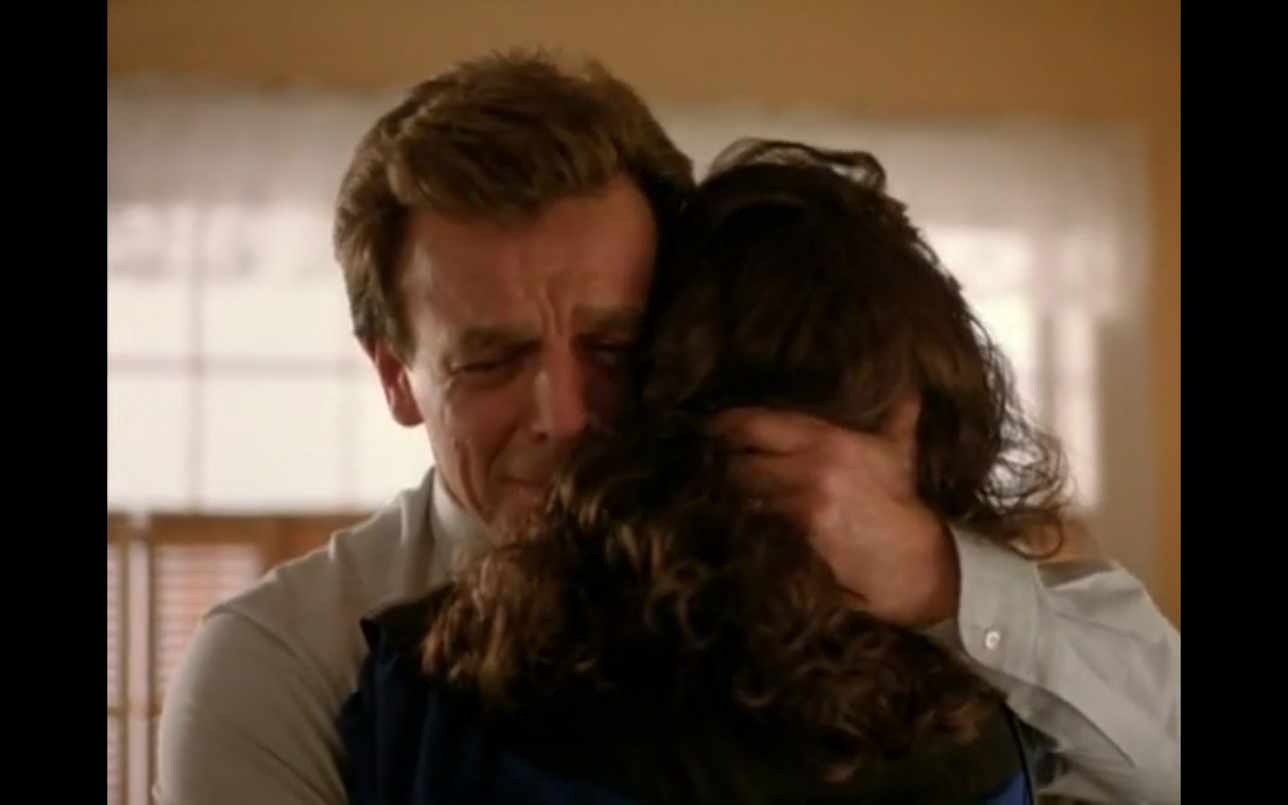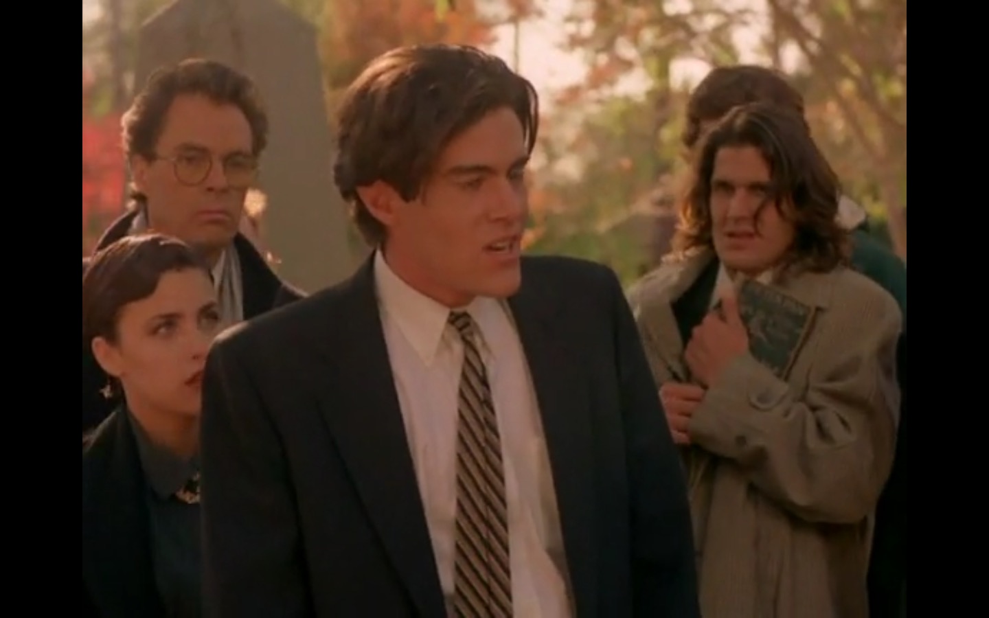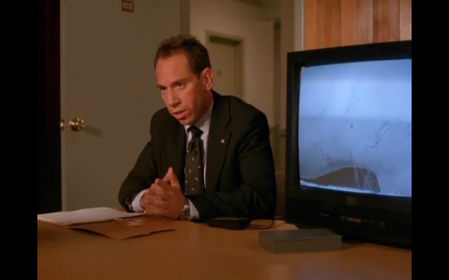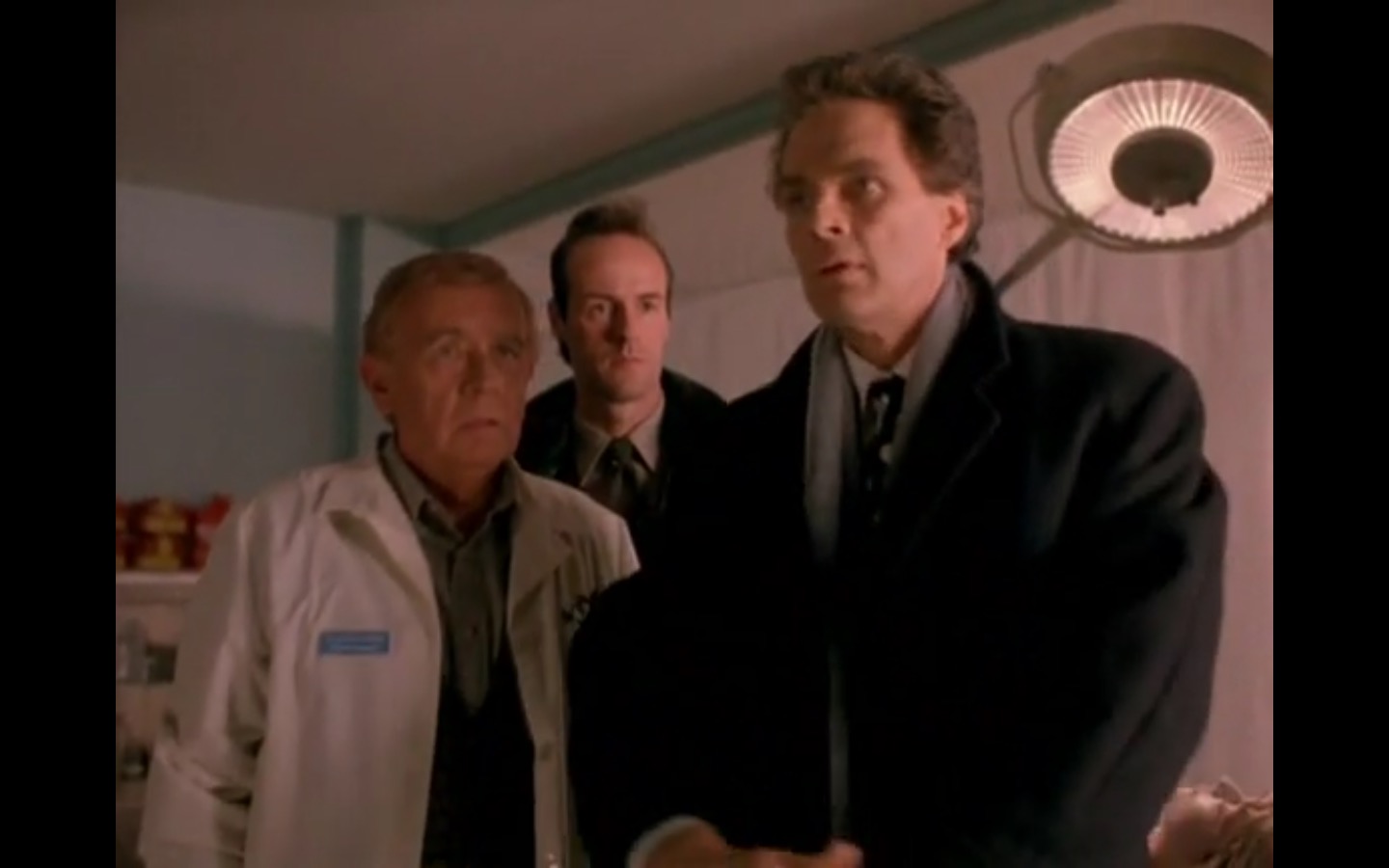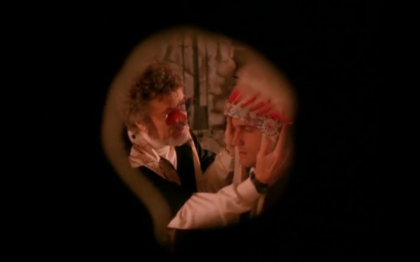 The centerpiece of the episode is undoubtedly the funeral. In preparing for Laura’s (Sheryl Lee) burial, Bobby (Dana Ashbrook) wrestles with his father and James (James Marshall) contemplates attending at all. Once there, the two quickly find themselves at odds, angrily lunging across the space in slow motion.