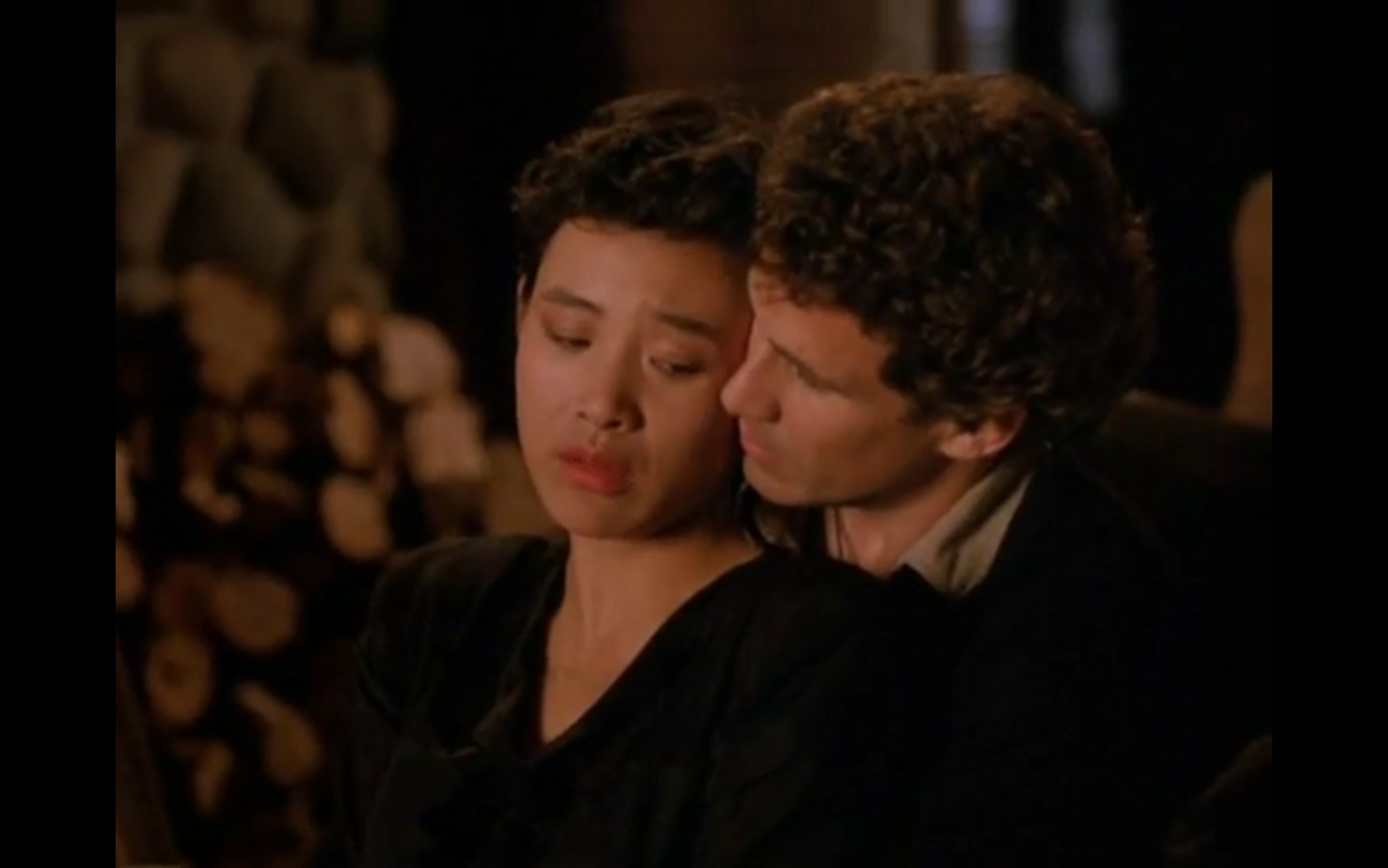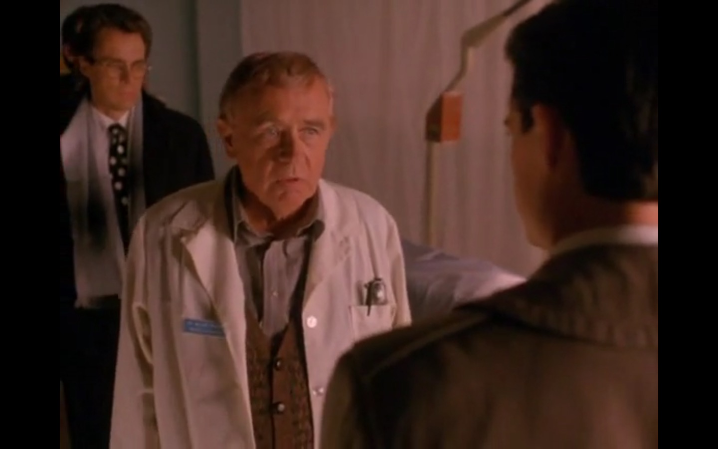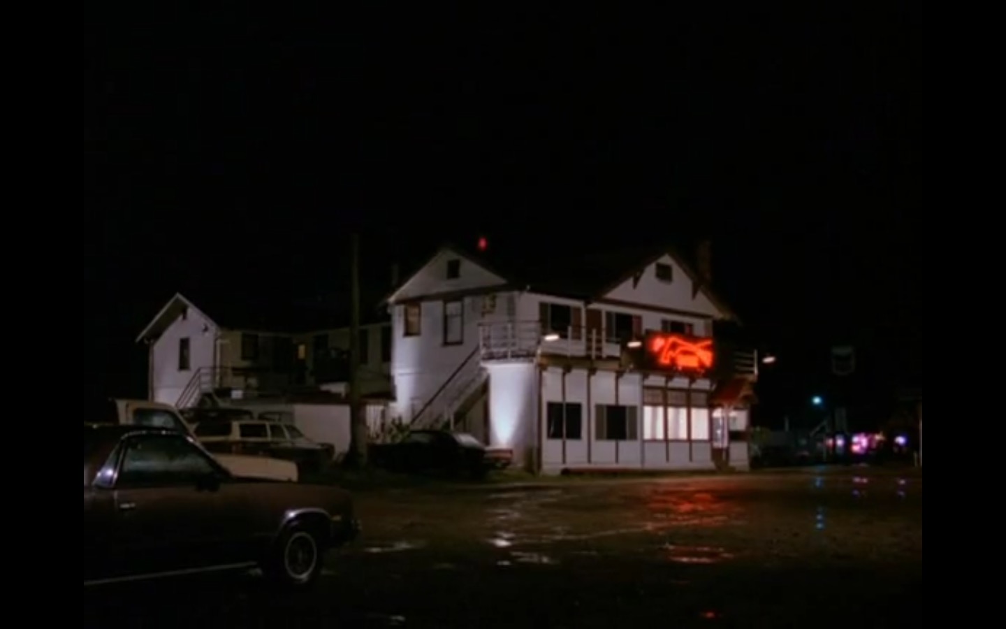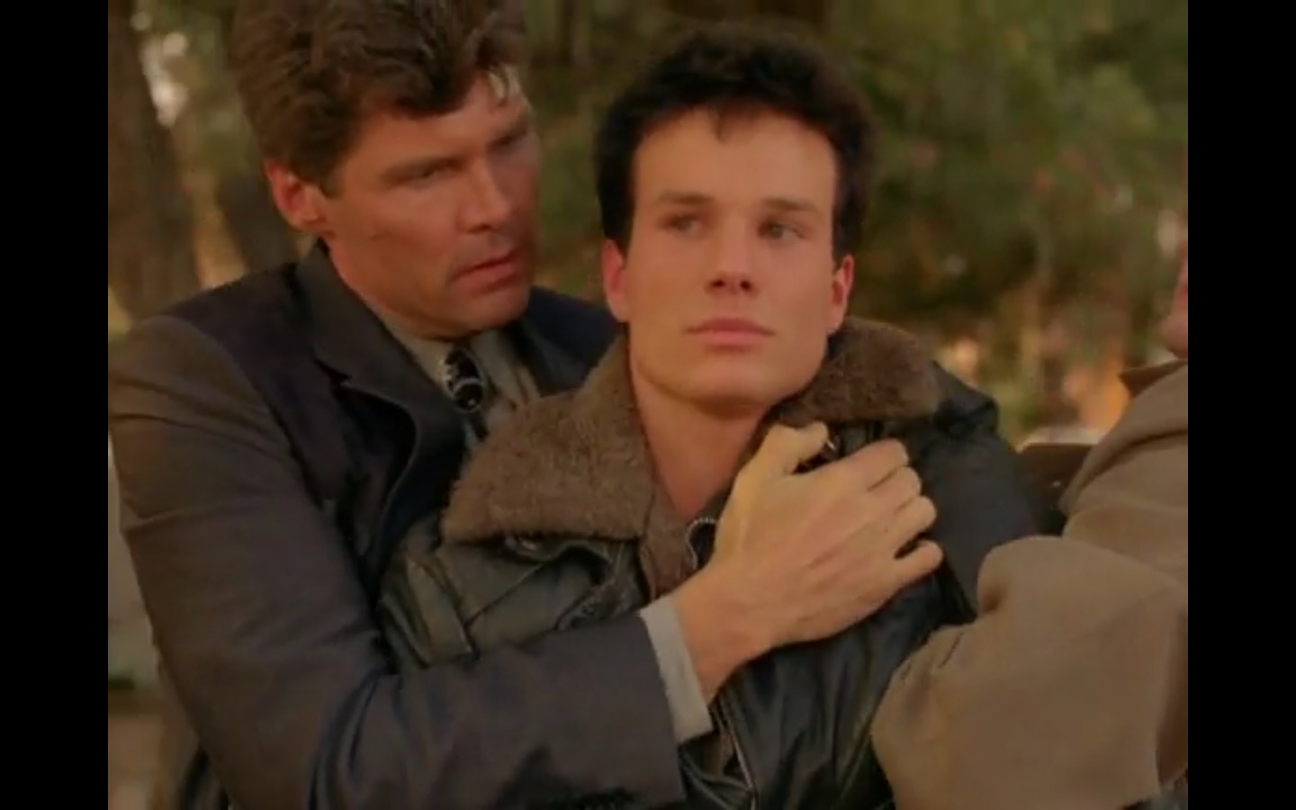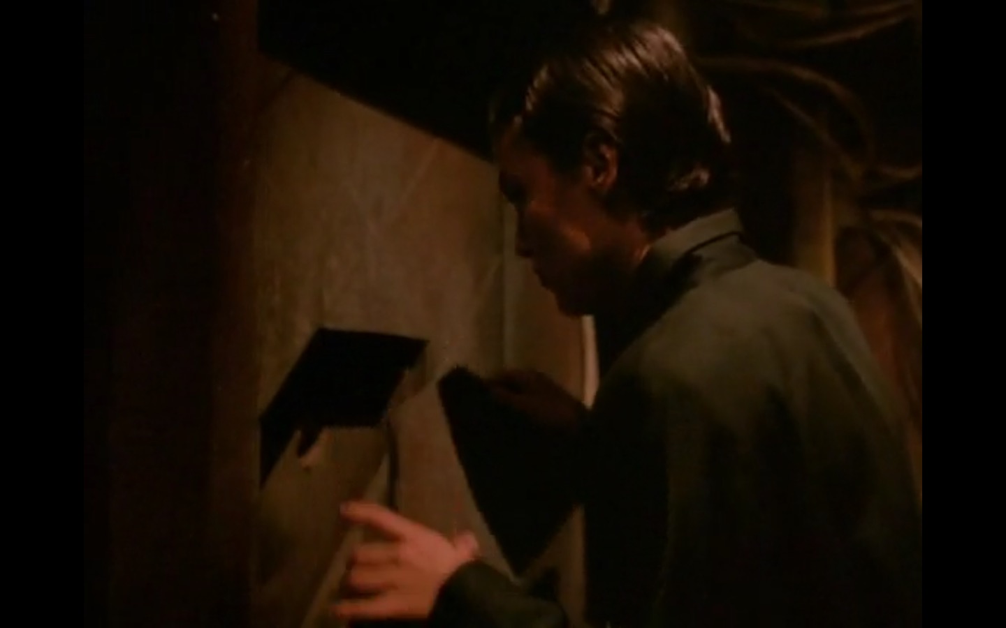 The centerpiece of the episode is undoubtedly the funeral. In preparing for Laura’s (Sheryl Lee) burial, Bobby (Dana Ashbrook) wrestles with his father and James (James Marshall) contemplates attending at all. Once there, the two quickly find themselves at odds, angrily lunging across the space in slow motion.