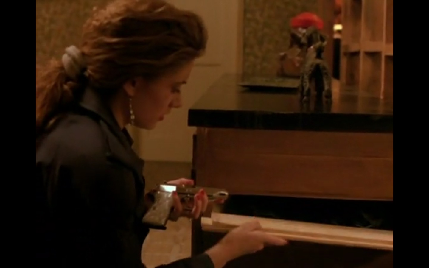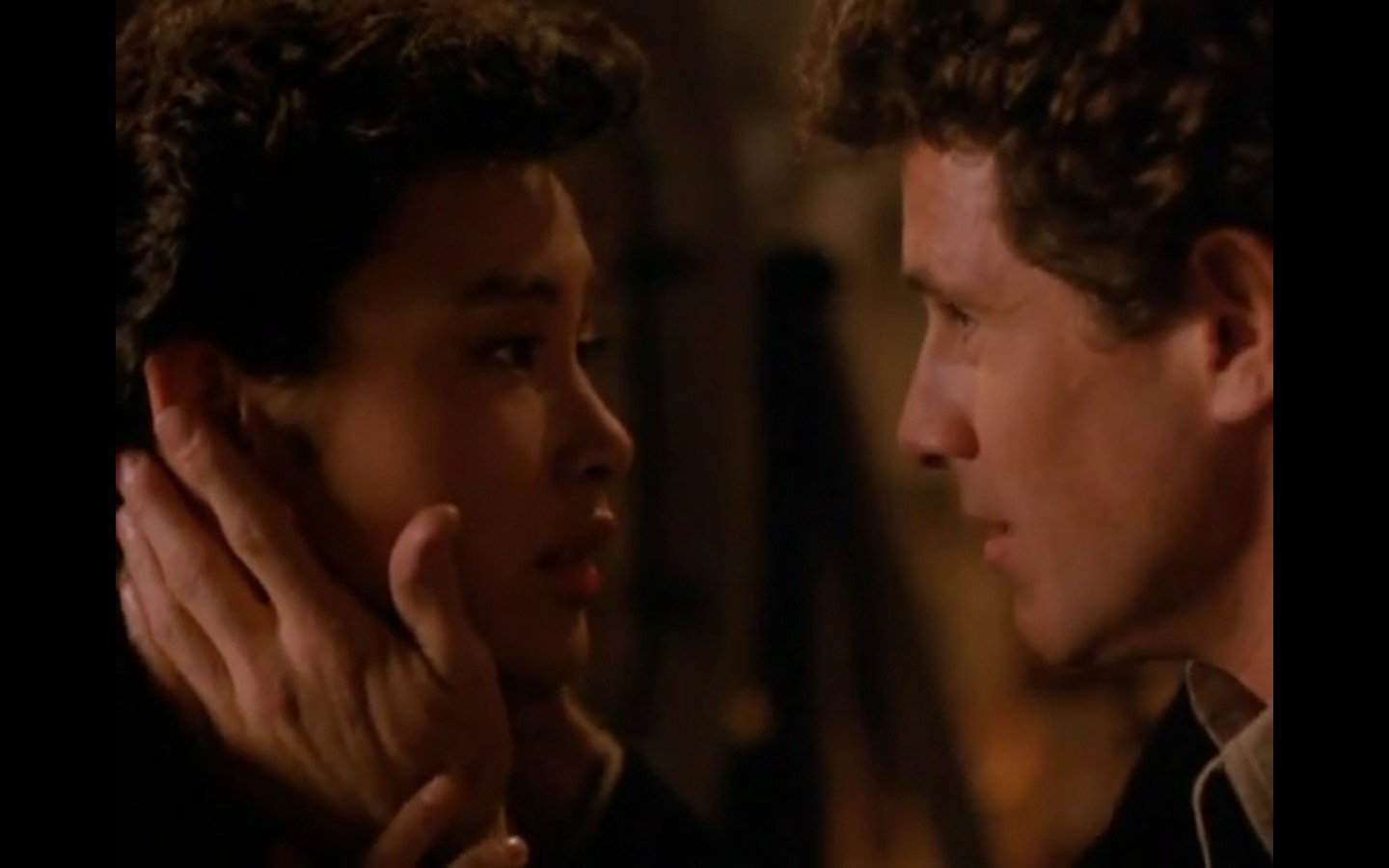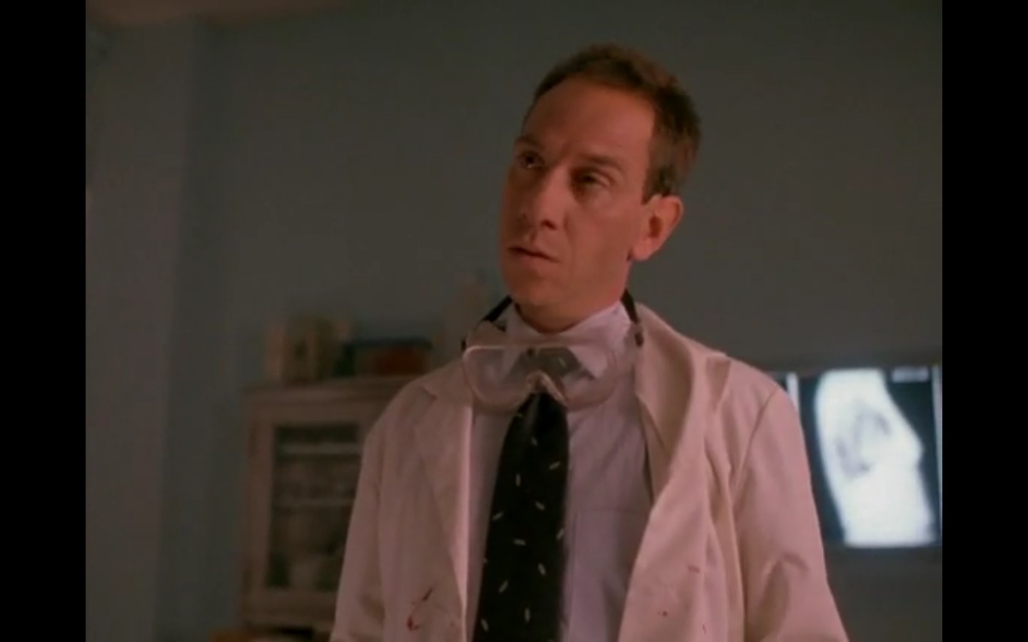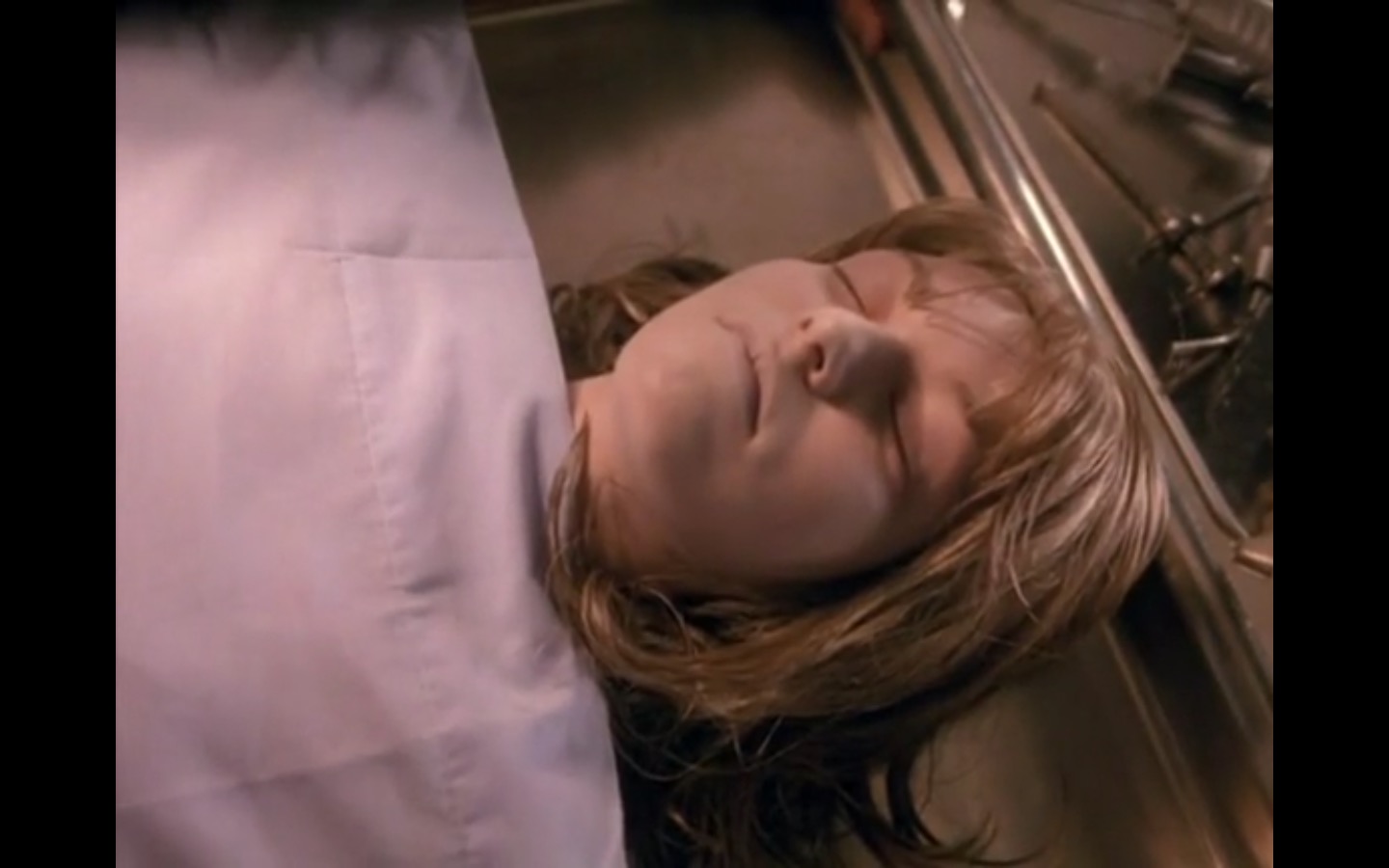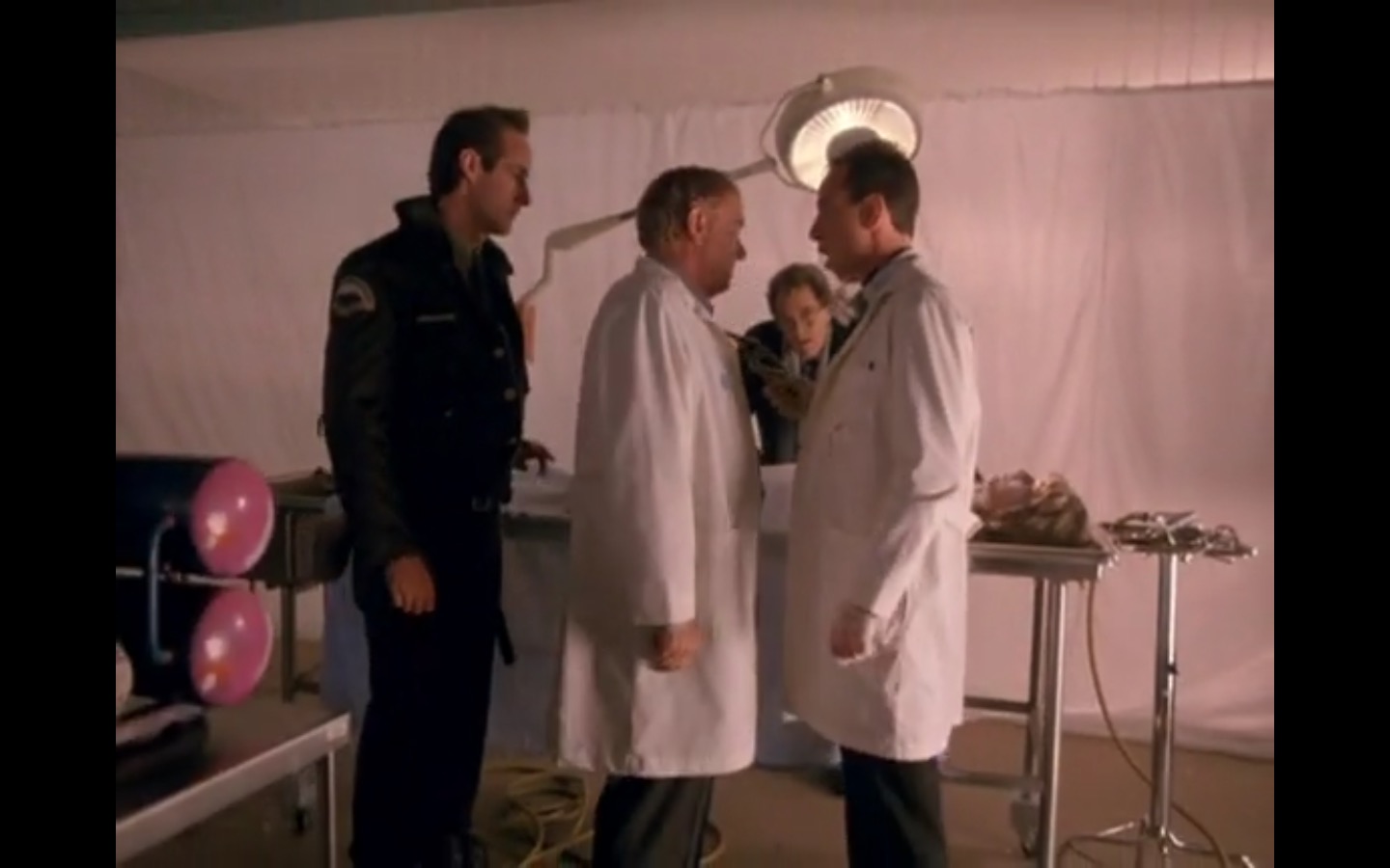 The centerpiece of the episode is undoubtedly the funeral. In preparing for Laura’s (Sheryl Lee) burial, Bobby (Dana Ashbrook) wrestles with his father and James (James Marshall) contemplates attending at all. Once there, the two quickly find themselves at odds, angrily lunging across the space in slow motion.