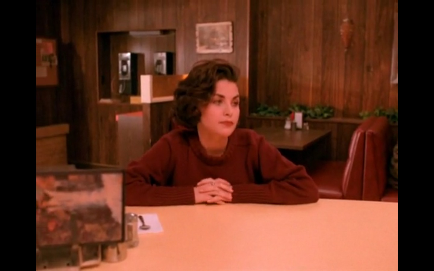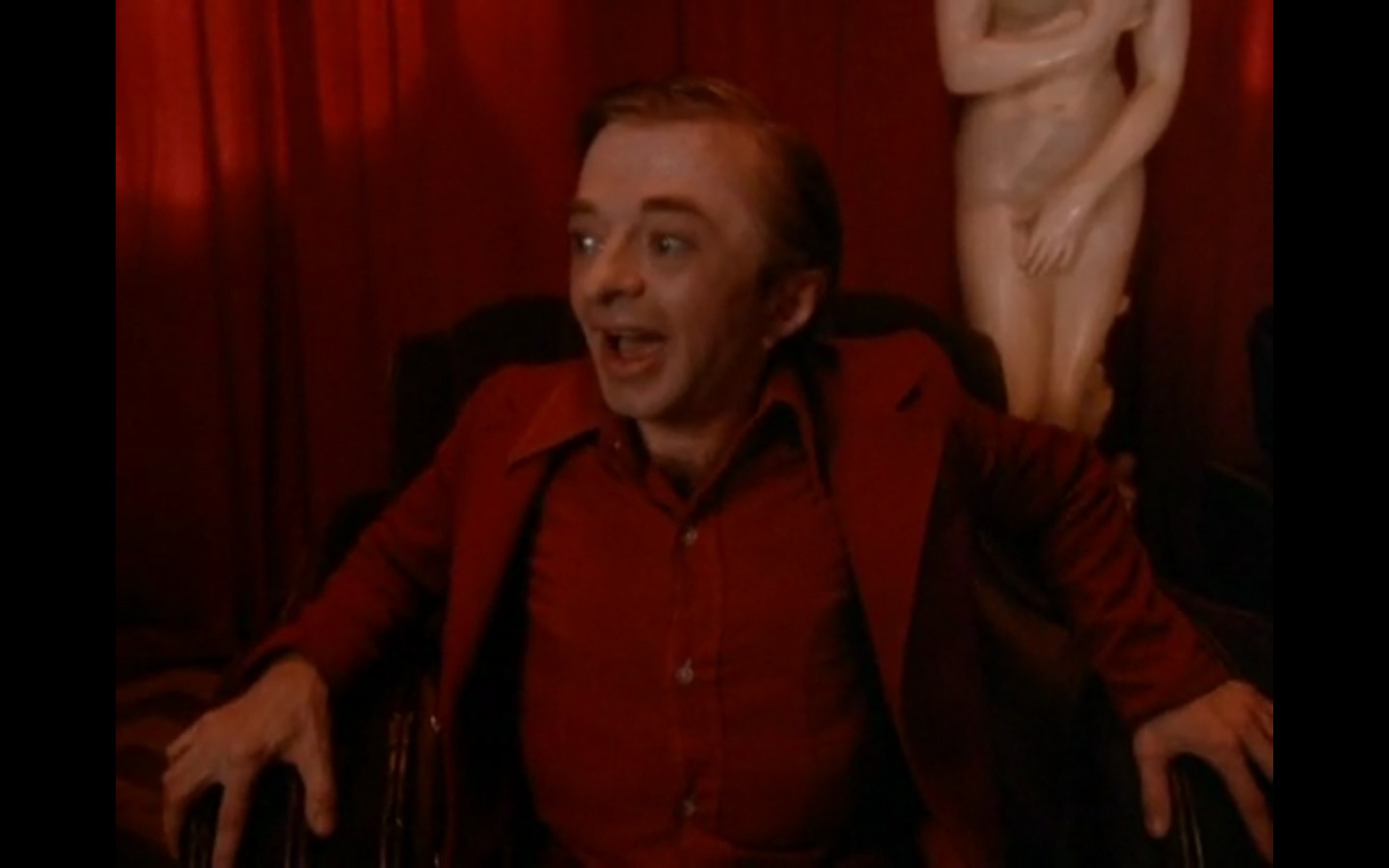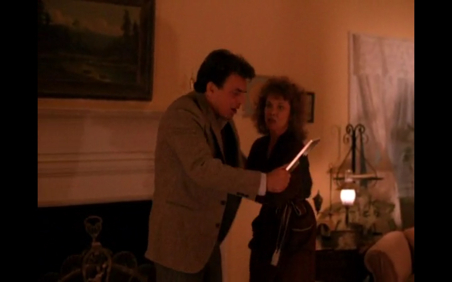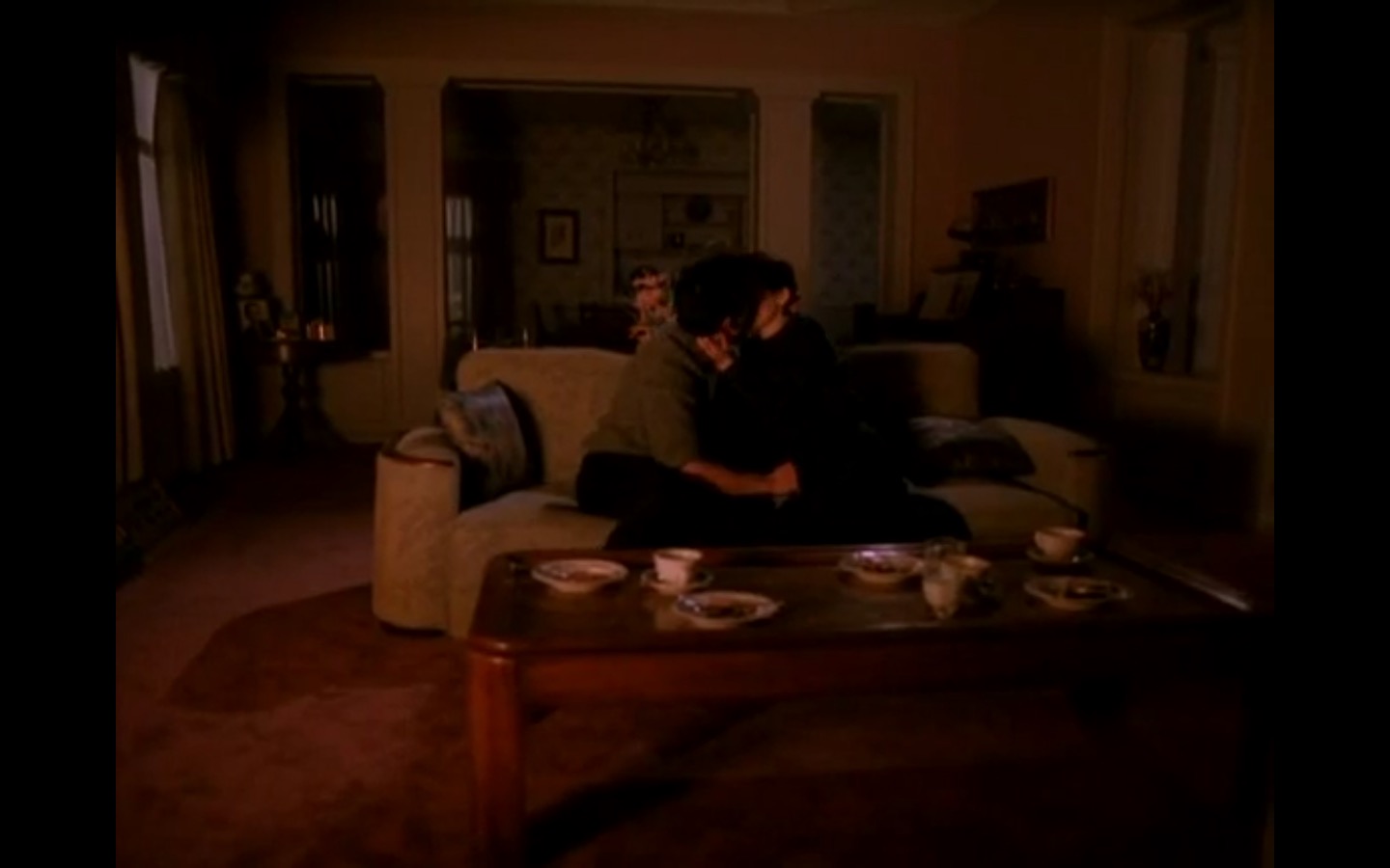 Across town, Mike (Gary Hershberger) and Bobby (Dana Ashbrook) find themselves in hot water with Leo. They don’t have the other half of the money they owe Leo for drugs because the cash remains locked up in Laura’s safe deposit box. This sinister narrative thread clashes with the rather tame story of Ed (Everett McGill) and Nadine (Wendy Robie) as his attempts to escape his marriage are foiled entirely on accident. I’m still not sure what to make of a plot about curtains, but it all adds to the strange brand of “weird” Twin Peaks is known for.
