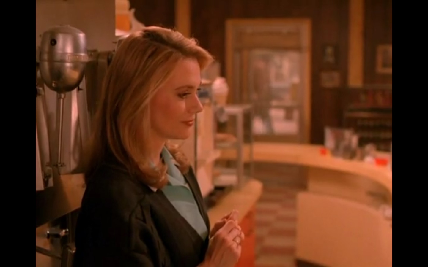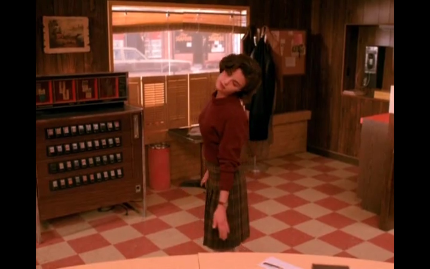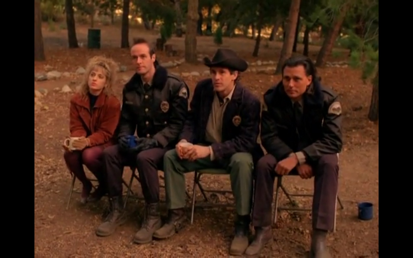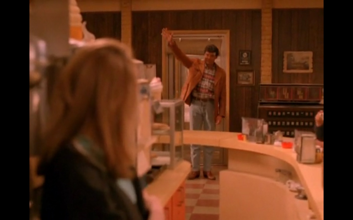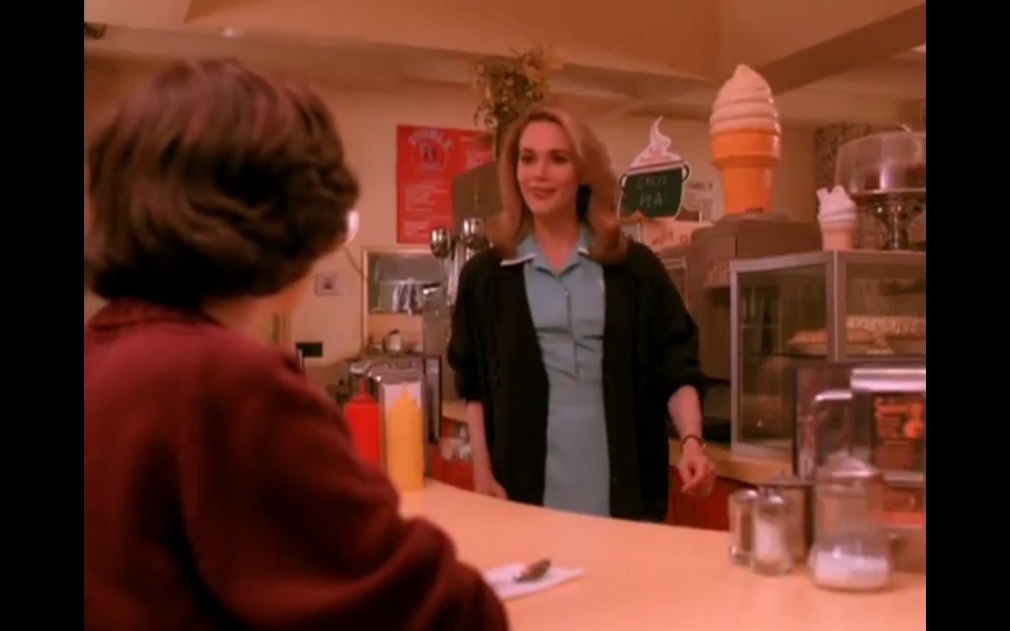Across town, Mike (Gary Hershberger) and Bobby (Dana Ashbrook) find themselves in hot water with Leo. They don’t have the other half of the money they owe Leo for drugs because the cash remains locked up in Laura’s safe deposit box. This sinister narrative thread clashes with the rather tame story of Ed (Everett McGill) and Nadine (Wendy Robie) as his attempts to escape his marriage are foiled entirely on accident. I’m still not sure what to make of a plot about curtains, but it all adds to the strange brand of “weird” Twin Peaks is known for.
