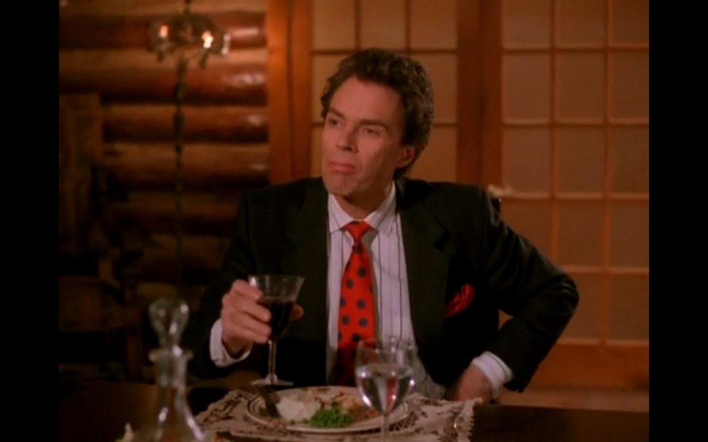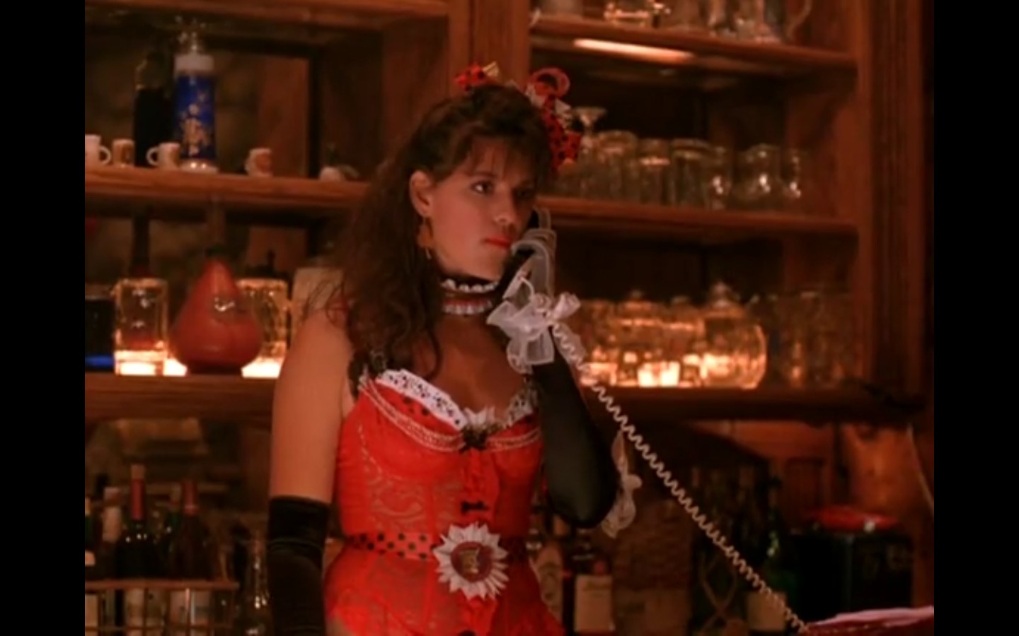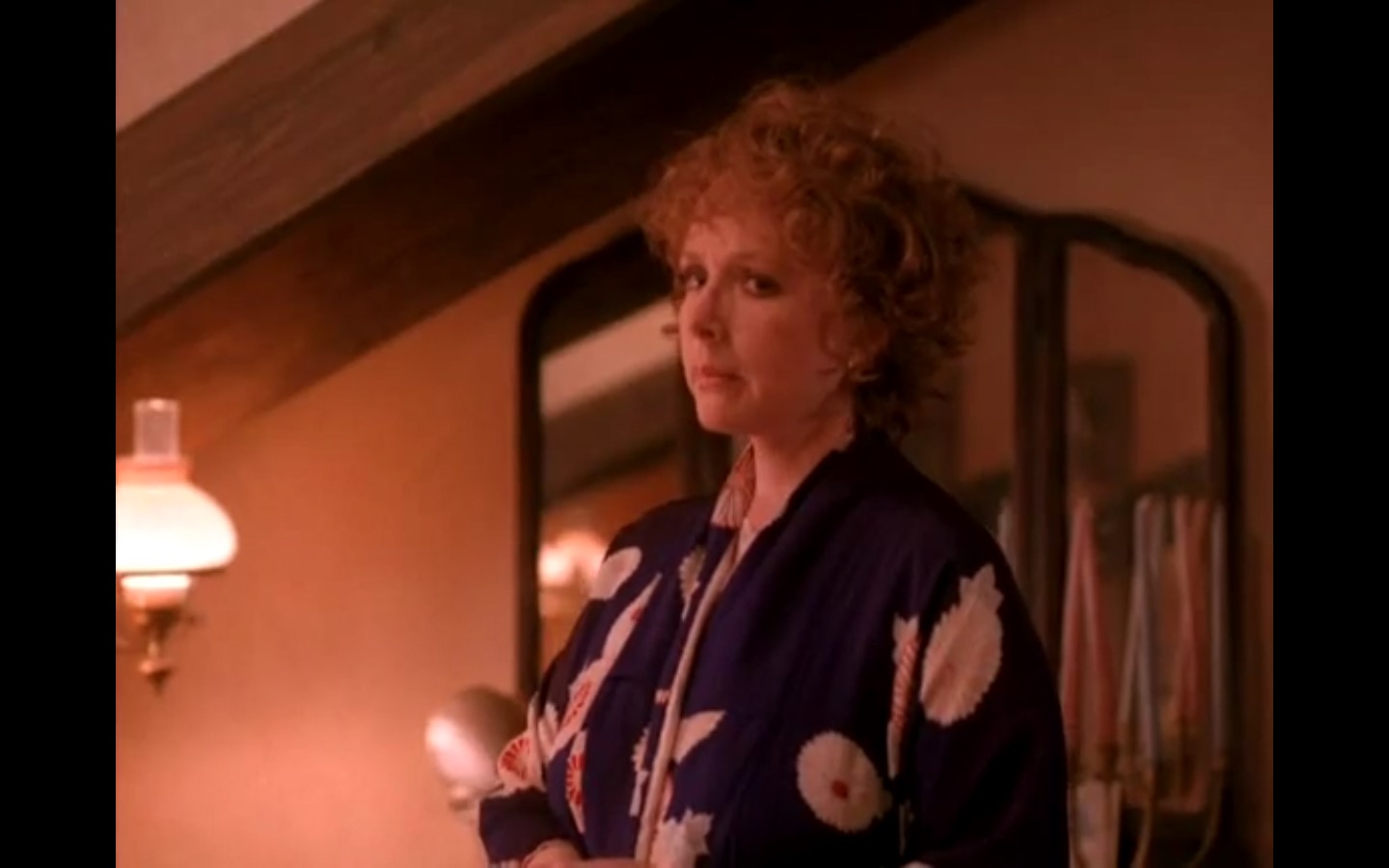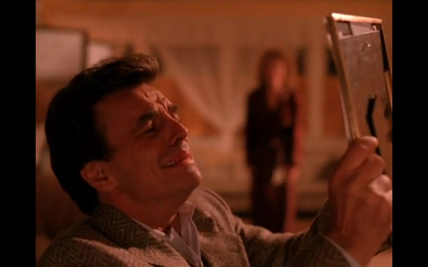Across town, Mike (Gary Hershberger) and Bobby (Dana Ashbrook) find themselves in hot water with Leo. They don’t have the other half of the money they owe Leo for drugs because the cash remains locked up in Laura’s safe deposit box. This sinister narrative thread clashes with the rather tame story of Ed (Everett McGill) and Nadine (Wendy Robie) as his attempts to escape his marriage are foiled entirely on accident. I’m still not sure what to make of a plot about curtains, but it all adds to the strange brand of “weird” Twin Peaks is known for.