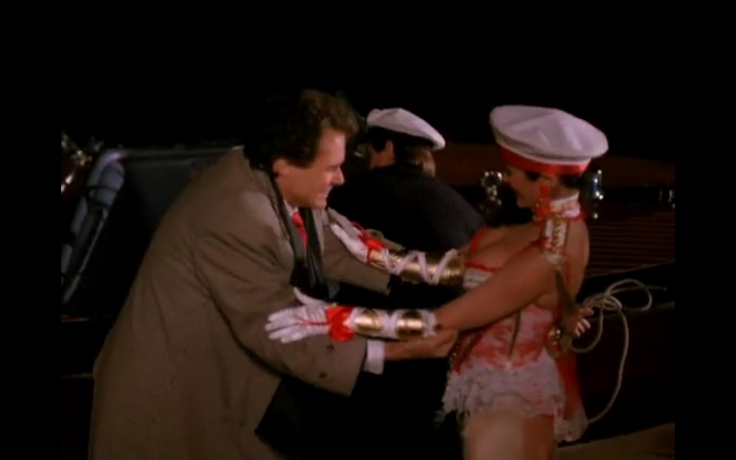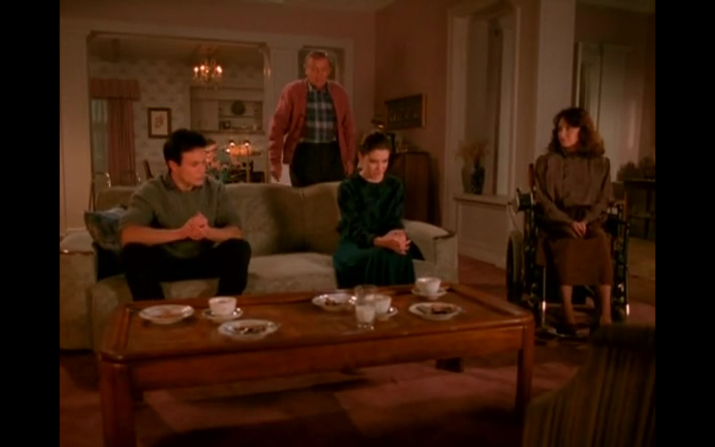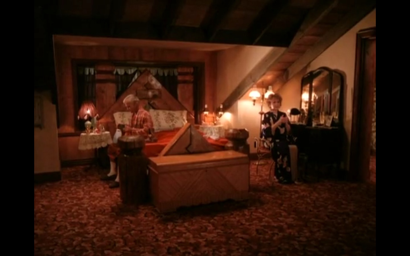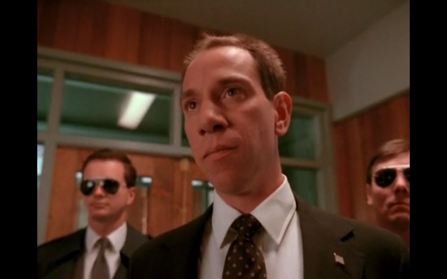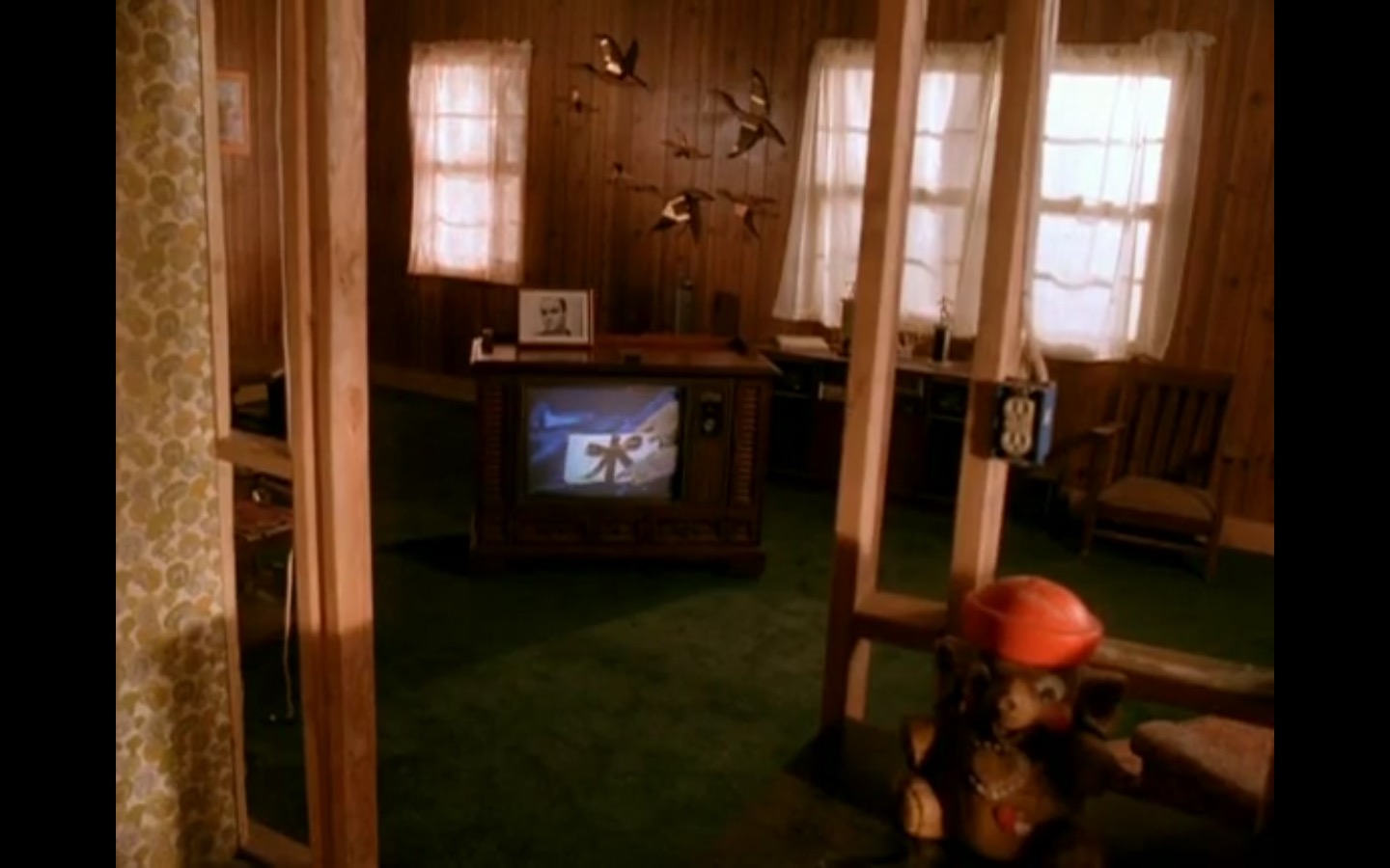 Across town, Mike (Gary Hershberger) and Bobby (Dana Ashbrook) find themselves in hot water with Leo. They don’t have the other half of the money they owe Leo for drugs because the cash remains locked up in Laura’s safe deposit box. This sinister narrative thread clashes with the rather tame story of Ed (Everett McGill) and Nadine (Wendy Robie) as his attempts to escape his marriage are foiled entirely on accident. I’m still not sure what to make of a plot about curtains, but it all adds to the strange brand of “weird” Twin Peaks is known for.
