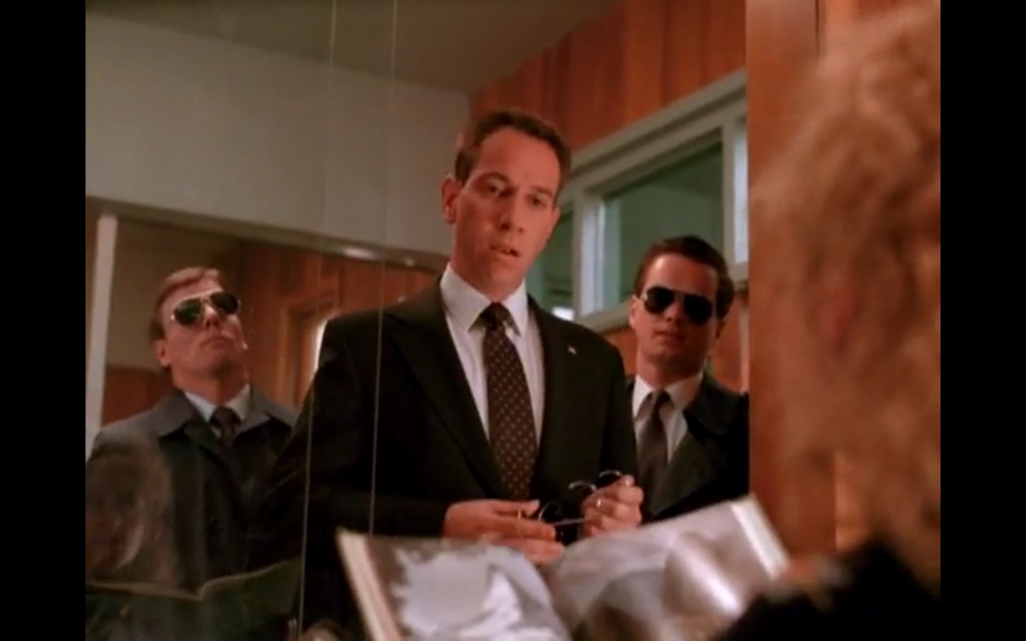 Meanwhile, Cooper’s colleague Albert Rosenfield (Miguel Ferrer) shows up with men in black to take over the toxicology investigation. His rough, insulting demeanor contrasts with Cooper’s friendlier style, but J has a soft spot for the Rosenfield name. I particularly enjoyed Sheriff Truman (Michael Ontkean) standing his ground with Albert look forward to seeing how they interact moving forward.